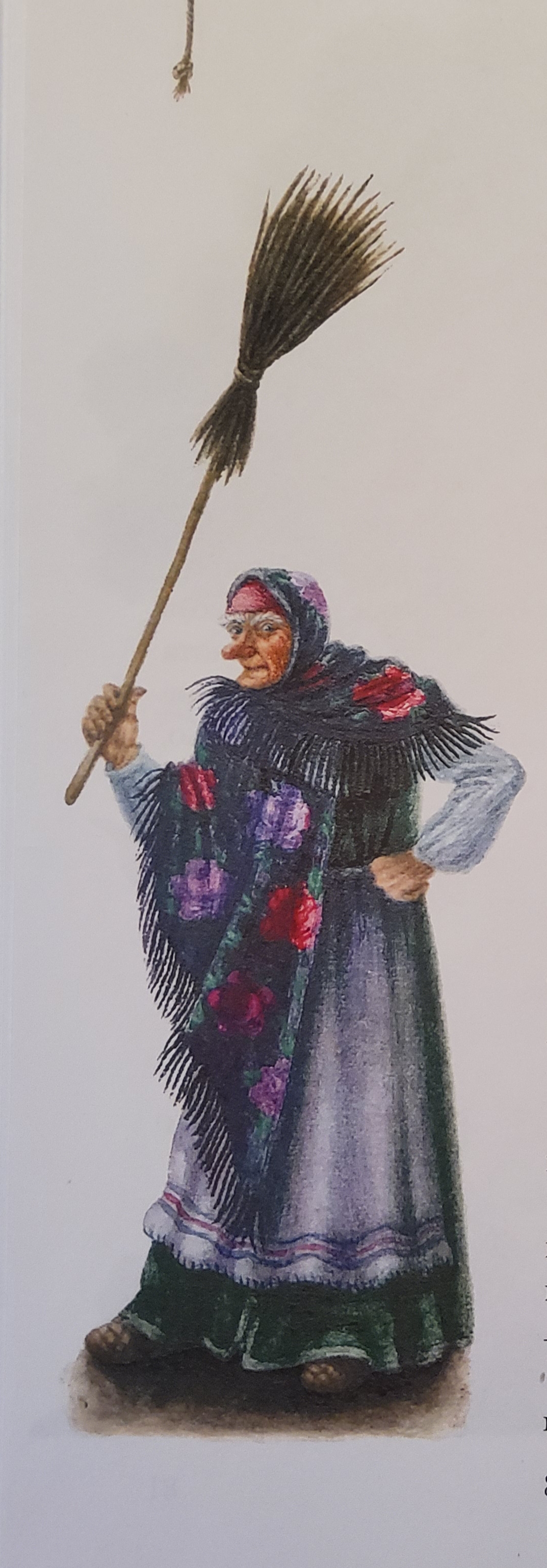 Баба-Яга изображена обычной старушкой: без инородных черт. И даже не злобной старухой. И даже не скорбной хозяйкой пограничья с миром мёртвых.