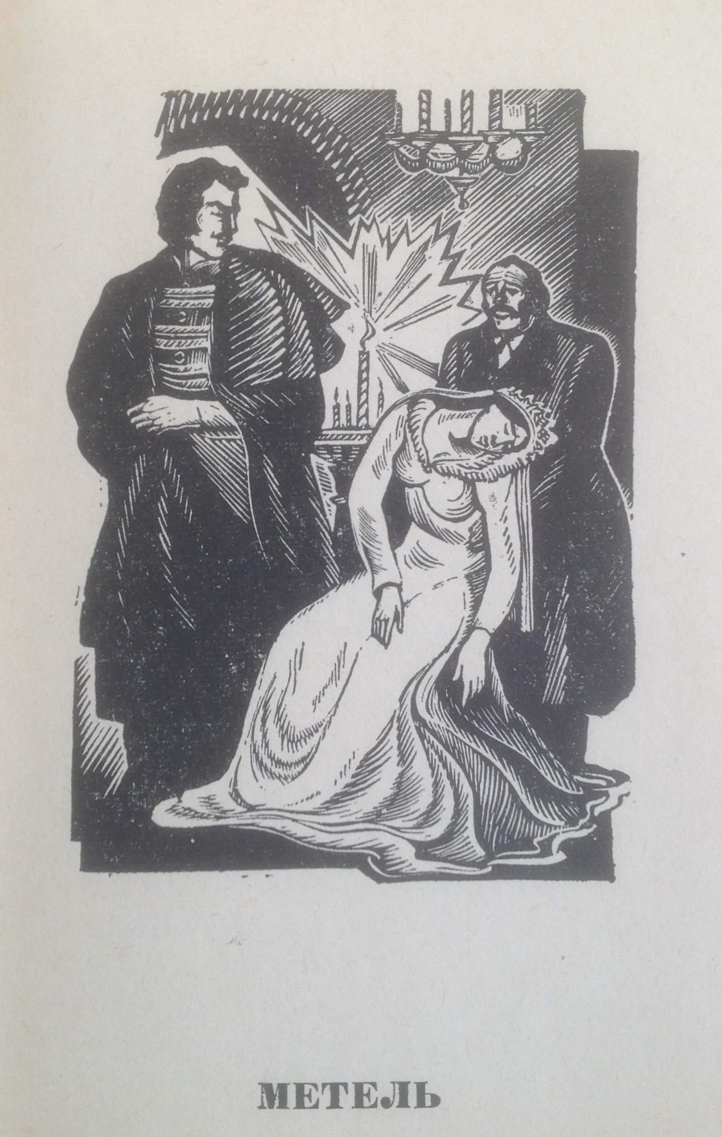 Иллюстрации — это как тизер книги (дразнилка, намекающая на содержание). Я вот и в детстве, и сейчас сначала просматриваю картинки, потом читать начинаю. И о чём же повесть "Метель", исходя из этих иллюстраций-тизера? О том как сильный духом Владимир борется с судьбой, и о незначительных персонажах (Маша, Бурмин), которых мы видим издалека.