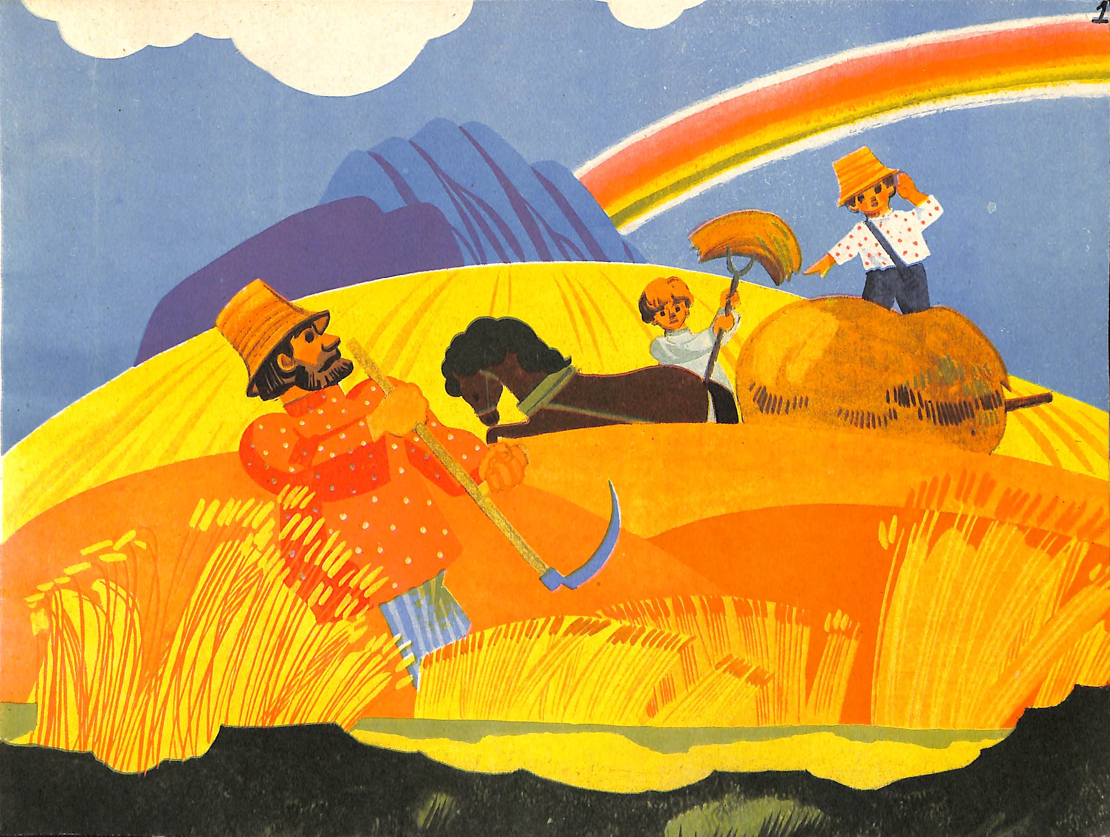 Отец работает — сено косит. Брат работает — сено возит. Да и сам Мальчиш то отцу, то брату помогает