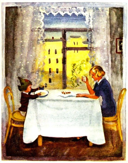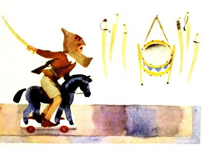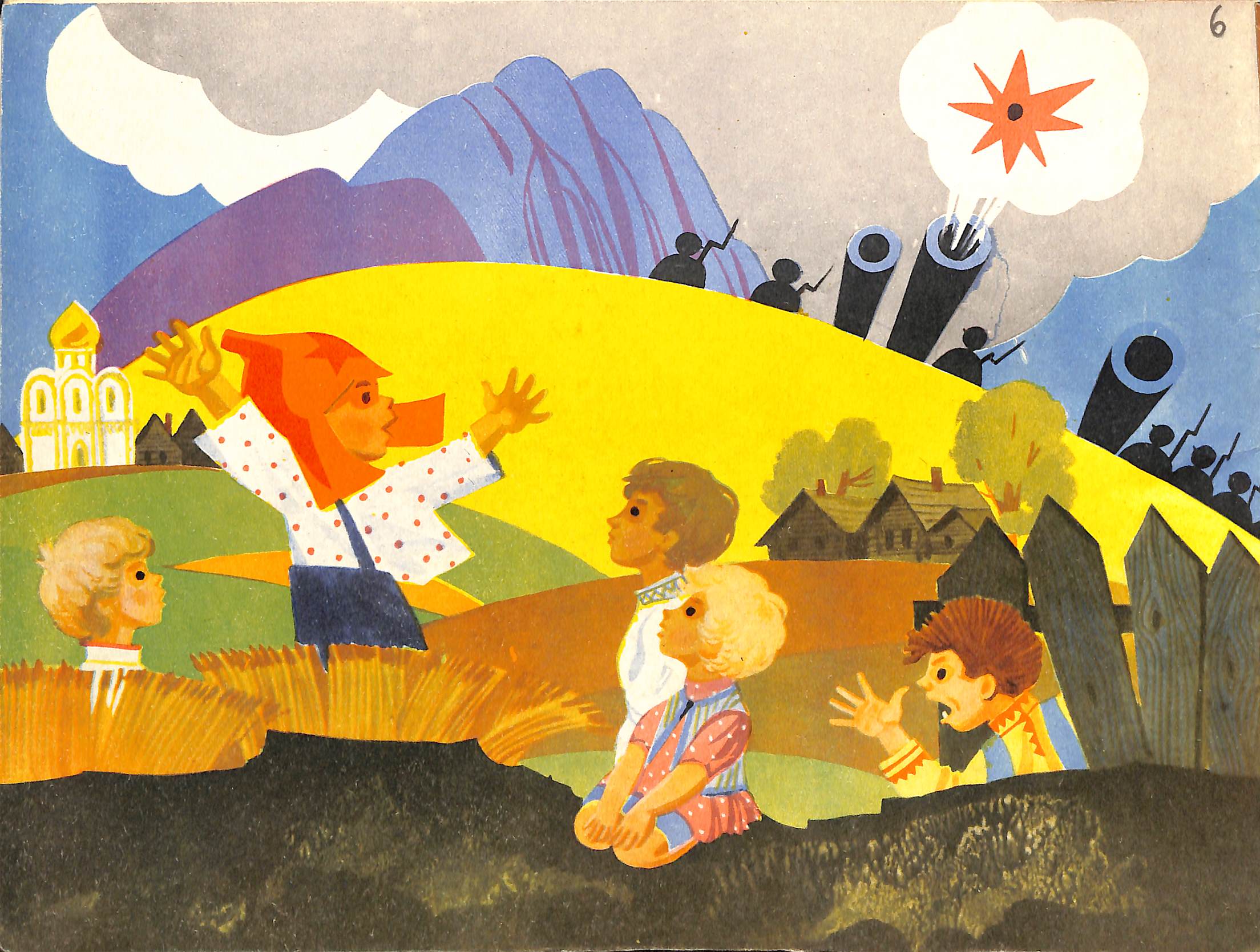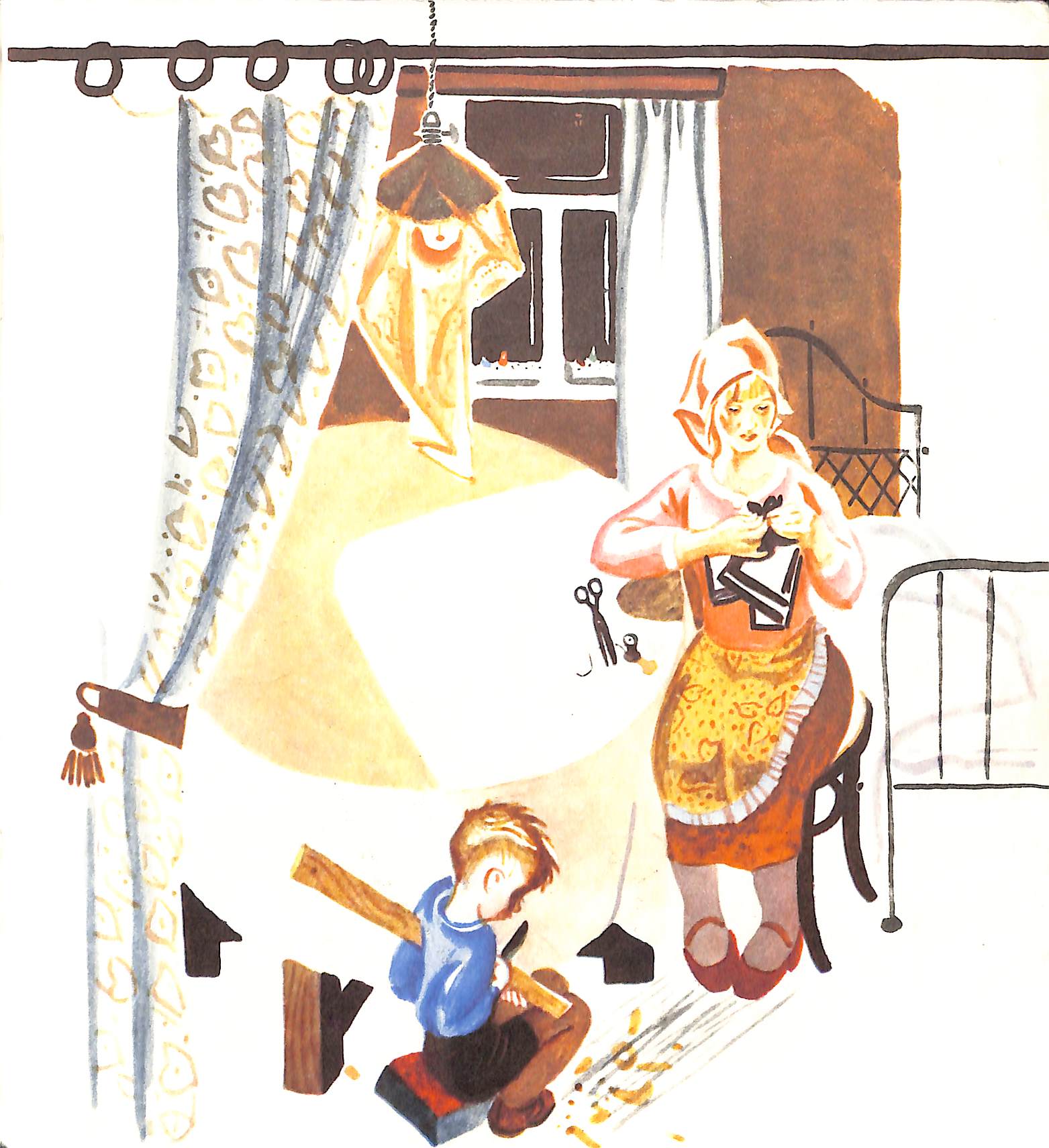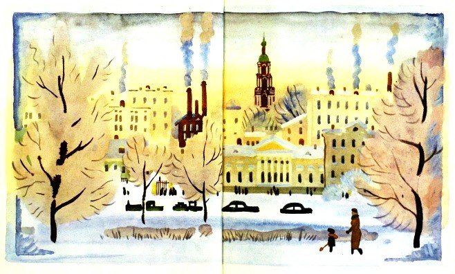 Иллюстрации Иткина меня удивили. Общее впечатление от эпохи — наши дни (1969), но для понимающих (а кто это мог быть? редактор?) — 1940-й год, как он мог бы сохраниться в детской памяти самого Иткина (в приукрашенном, понятно, виде). Какой, однако, Иткин тонкий пост-модернист.