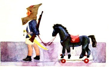 б) Деревянные сабли, конь на колёсиках — игрушки советских детей всех времён. Шортики, белая рубашечка, джемпер — всё как в Семидесятых у меня было. Вот будёновки не было, очень завидовал тем, у кого стилизованные под будёновку летние шапочки были.