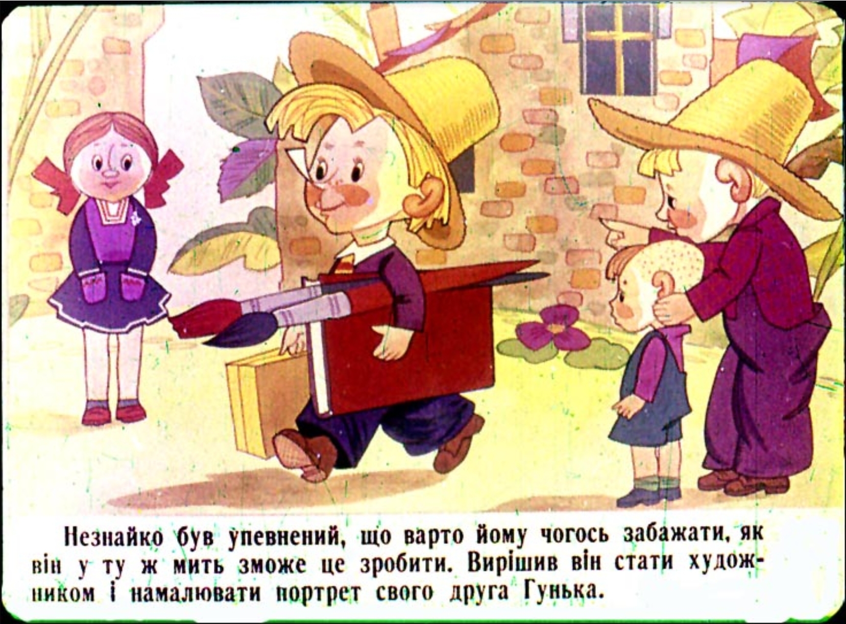 Продолжили иллюстрирование цикла о Незнайке и самые первые иллюстраторы — супруги Григорьевы из Киева. Незнайка — мальчишка, волшебник — взрослый (старик).