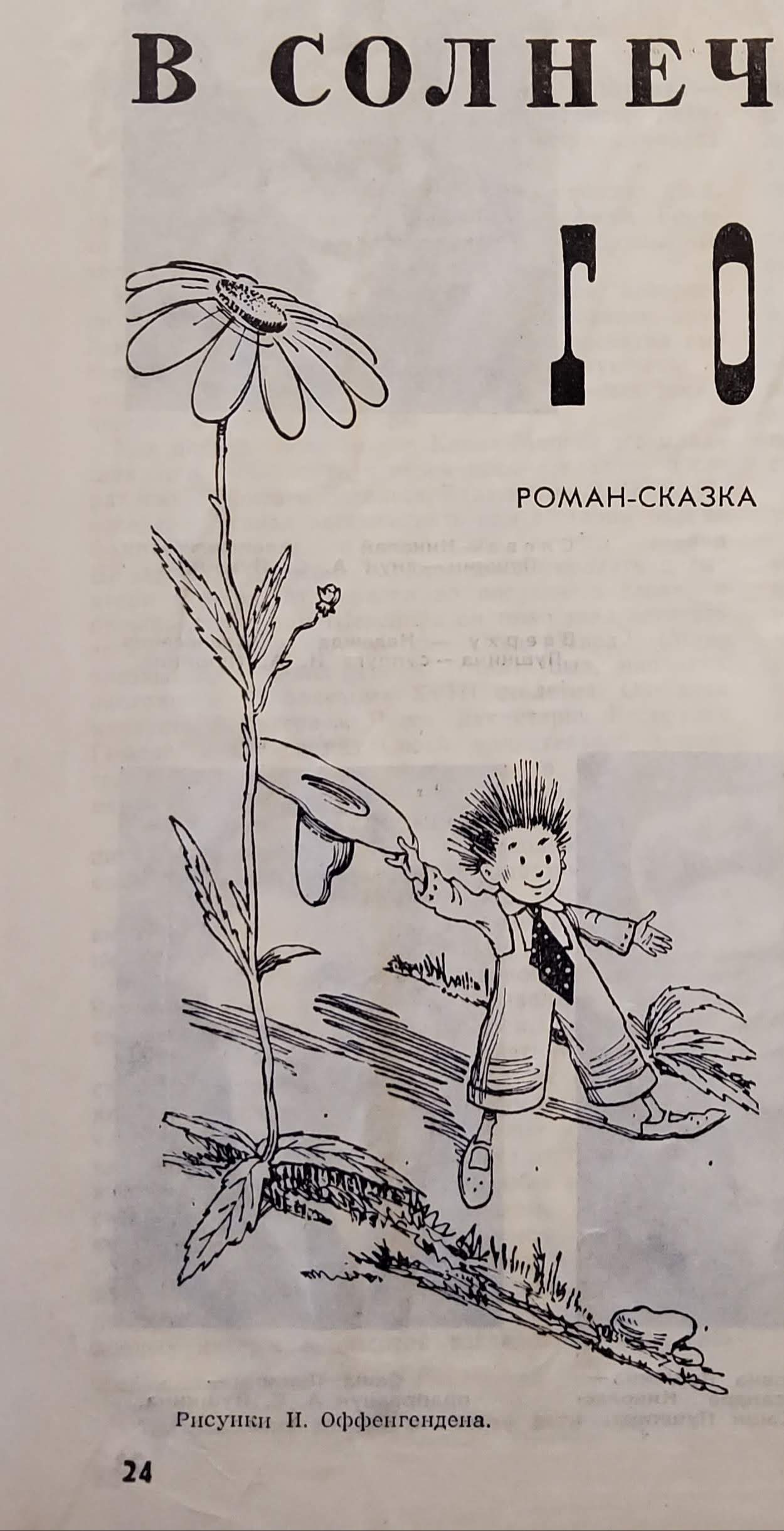 Однако в журнальной публикации (на сей раз это был общесоюзный журнал "Юность") повесть проиллюстрировал И.Оффенгенден, книга с его иллюстрациями вышла через год в республиканском издательстве в Минске параллельно с московским изданием. Хоть Оффенгенден и был первым иллюстратором новой книги, выбор облика Незнайки был предрешён: широкополая шляпа и торчащие во все стороны космы.