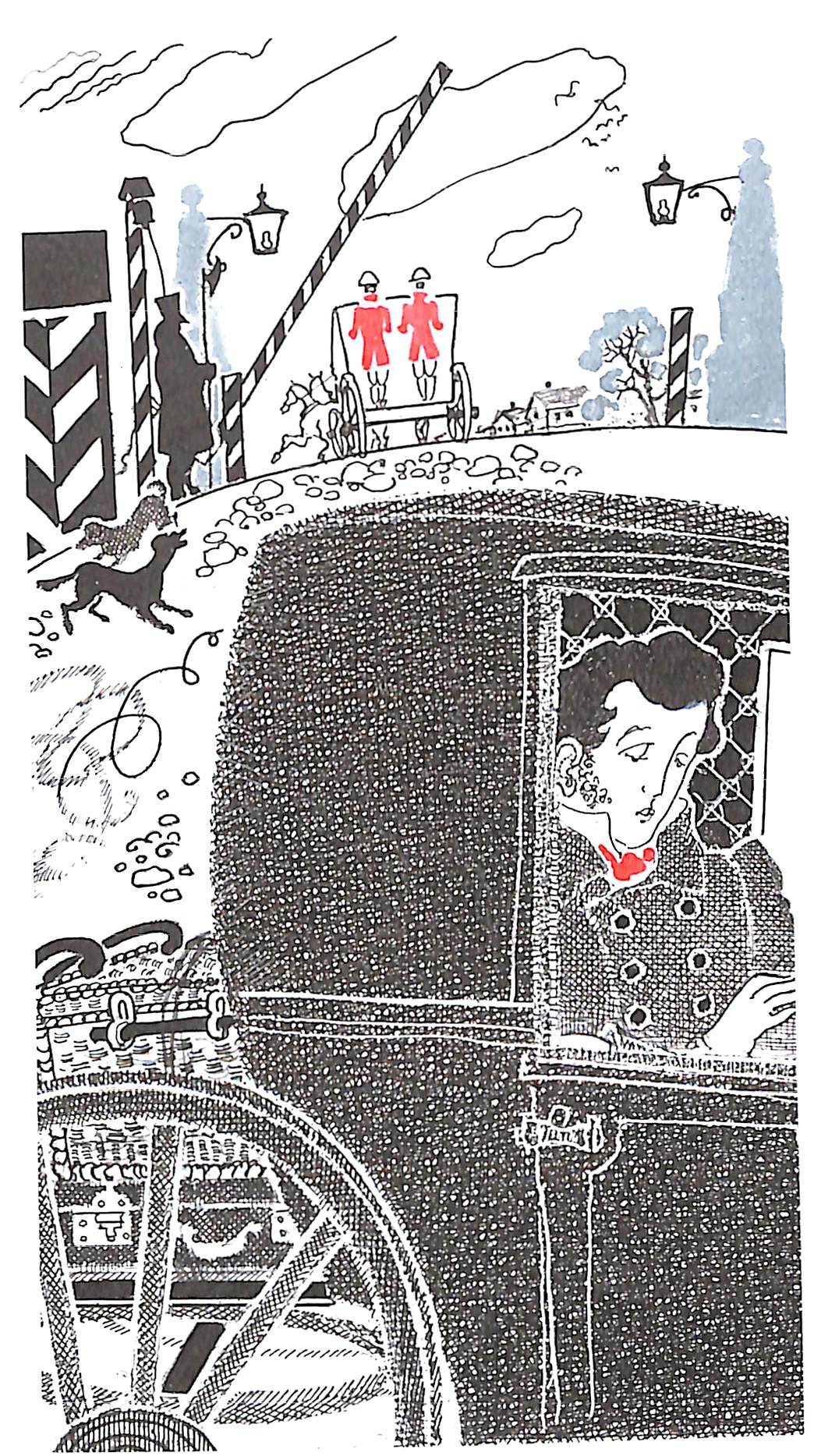 Всё-таки художники статично рисуют героев романа: уж эти герои совсем другие, переродились, а на рисунках всё те же (внешне не сильно изменились). Ну вот Евгений вдали, а Татьяна отворотила голову — это спасает ситуацию, мы в лица героев не вглядываемся.