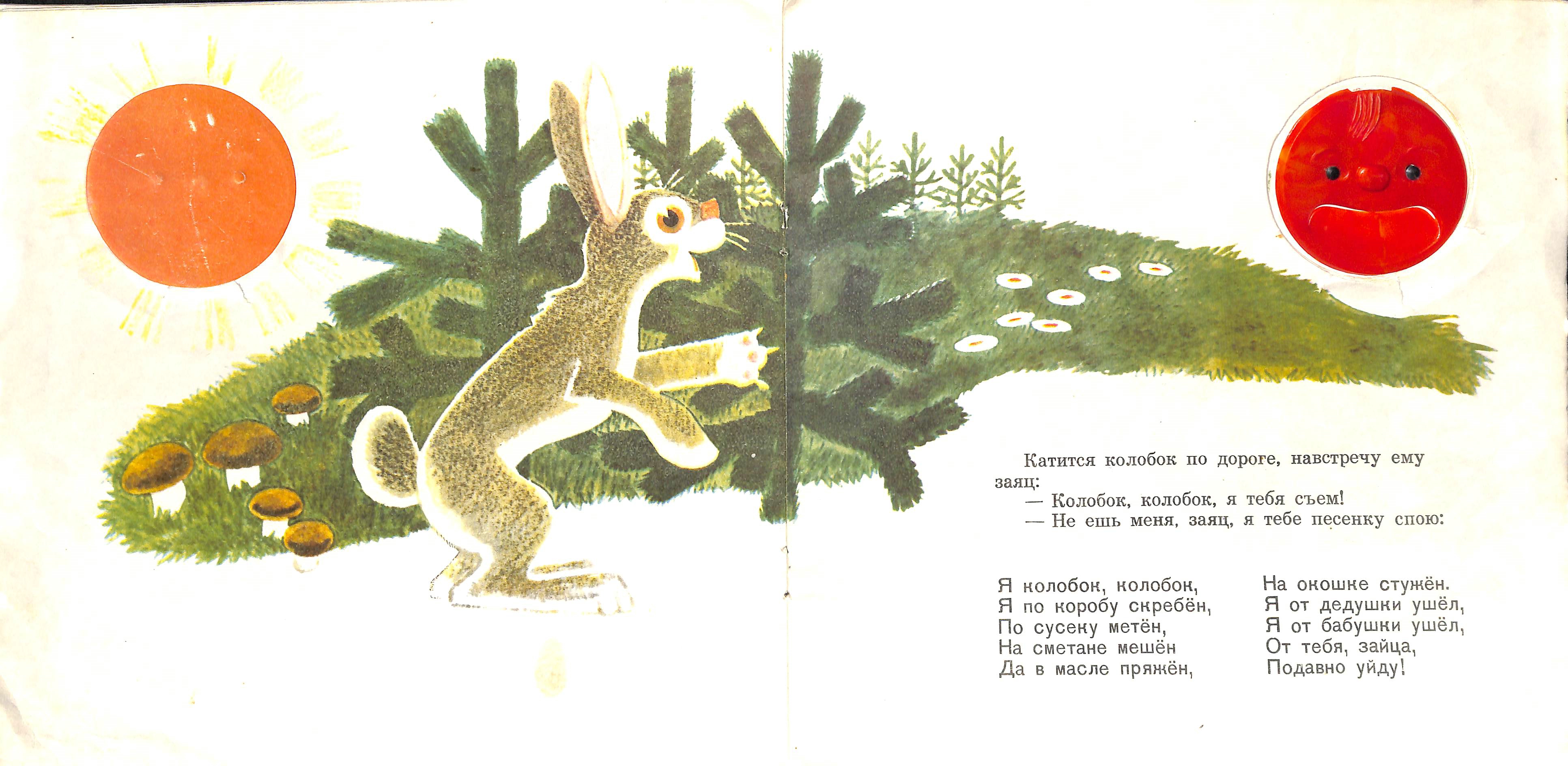 Сегодня — типовые советские книжки с "Колобком" крепких советских художников. Эпоха второй половины Семидесятых (у меня позднейшие переиздания).
