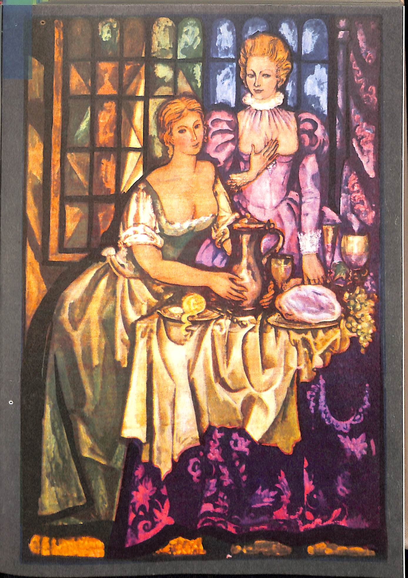 И отдельно — про ксилографию Кравченко. Не получилось у него сделать полное совпадение пяти шмуцтитулов к каждой книге. К третьей книге было сделано две иллюстрации — про дуэль (я видел её на шмуцтитуле издания 1935 г.) и про "время звенеть бокалами". Эта гравюра, видимо, была помещена к Четвёртой книге в издании 1935 г. Конечно, застолий в романе хватает — можно во всякой части их отыскать. Но здесь явно иллюстрация к нашему эпизоду. Так что волю художника (или редактора) уважать не будем.