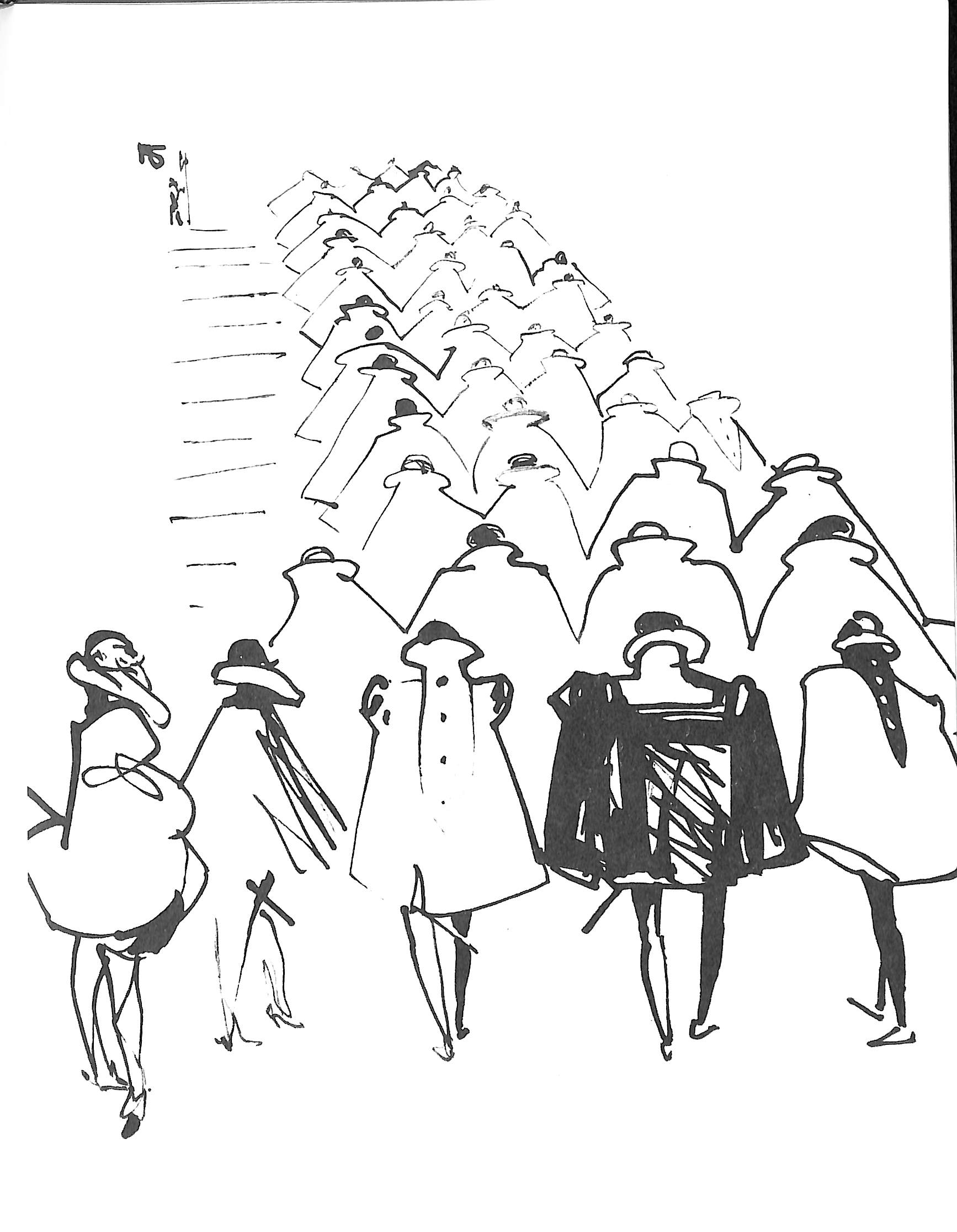 Кибрик рисует самое начало — девицу-приманку, которая пританцовывает на ночных улицах.