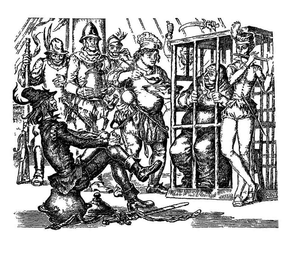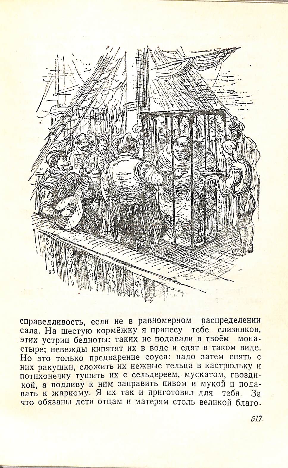 В послевоенной советской книжке с перерисованными офортами Ф.Ропса — соотечественника и современника де Костера — наконец-то удалось обнаружить рисунок, привязанный к сюжету: это, конечно, откорм монаха.