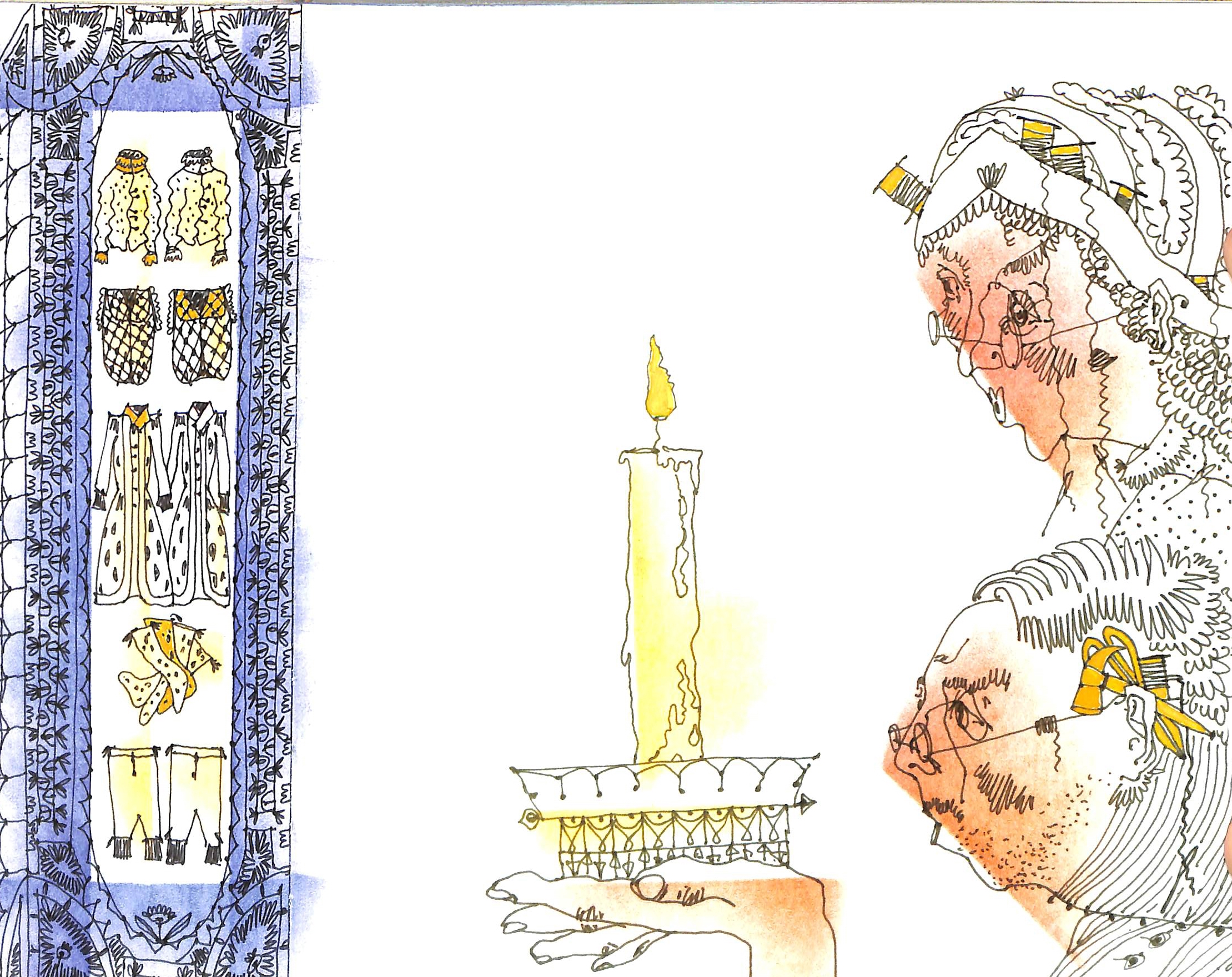 История про маленьких людей, которые помогали в работе бюргерам разных профессий. Активно — вслед за строфами стихотворения — рисует Носкович маленьких человечков.