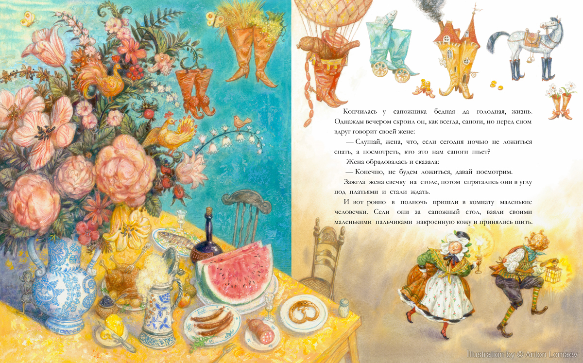 Ну что ж, хорошую карьеру сделала в русской иллюстрации сказка братьев Гримм "Маленькие человечки".