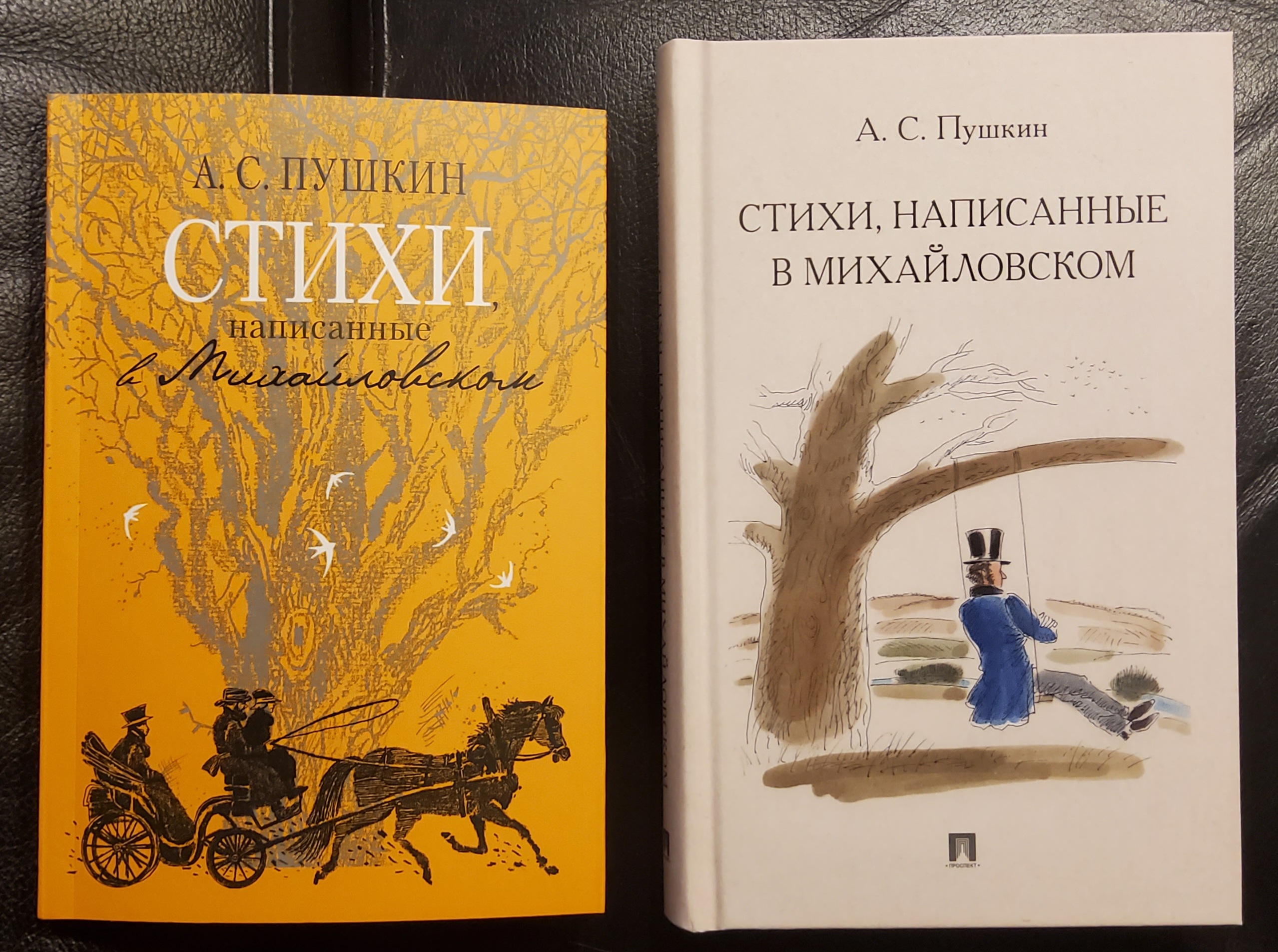 Пополнение коллекции иллюстрированной пушкинианы. С интервалом в четыре года вышли две книги Пушкина разных издательств с иллюстрациями разных художников, но под одним заглавием и с одинаковым составом стихотворений. "Стихи, написанные в Михайловском".