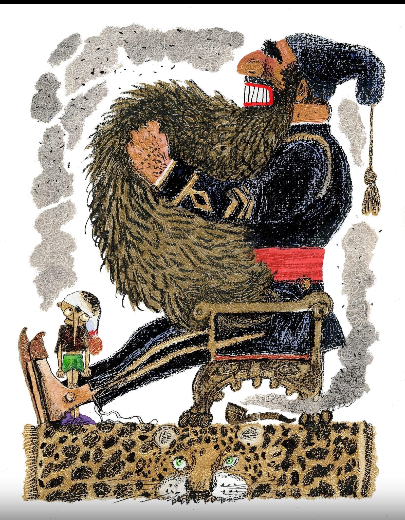 1) Карабас-Барабас — злодей в полувоенной форме. Мотивы униформы чернорубашечников (включая колпак) слишком явственны, чтобы их игнорировать — судя по нарукавным нашивкам, Карабас имеет у Муссолини не очень большой чин, но всё-таки аналог офицерскому.