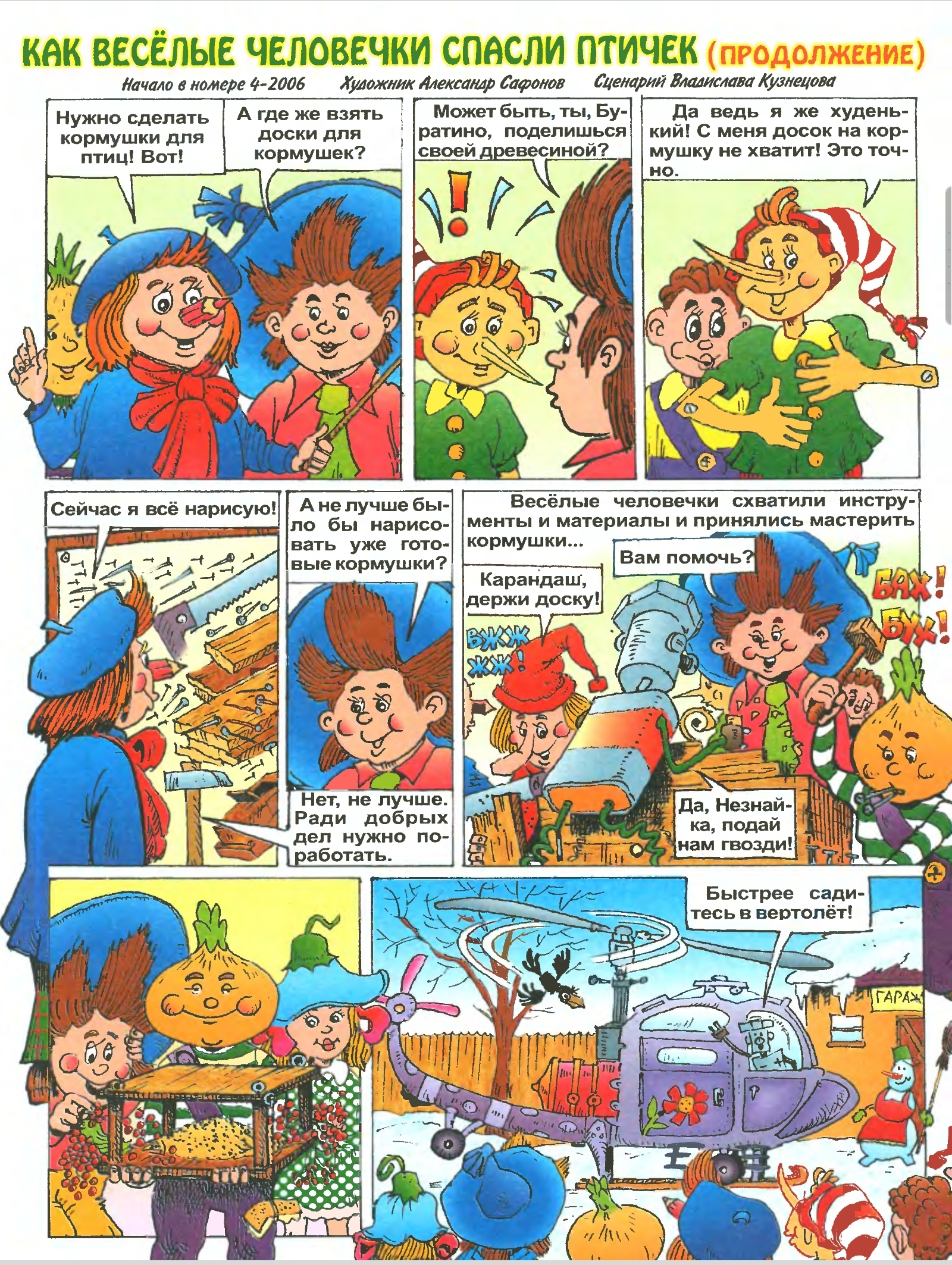 1) На несколько номеров растянулся комикс художника А.Сафонова. Спасение птичек от кошек. Очень благостно.