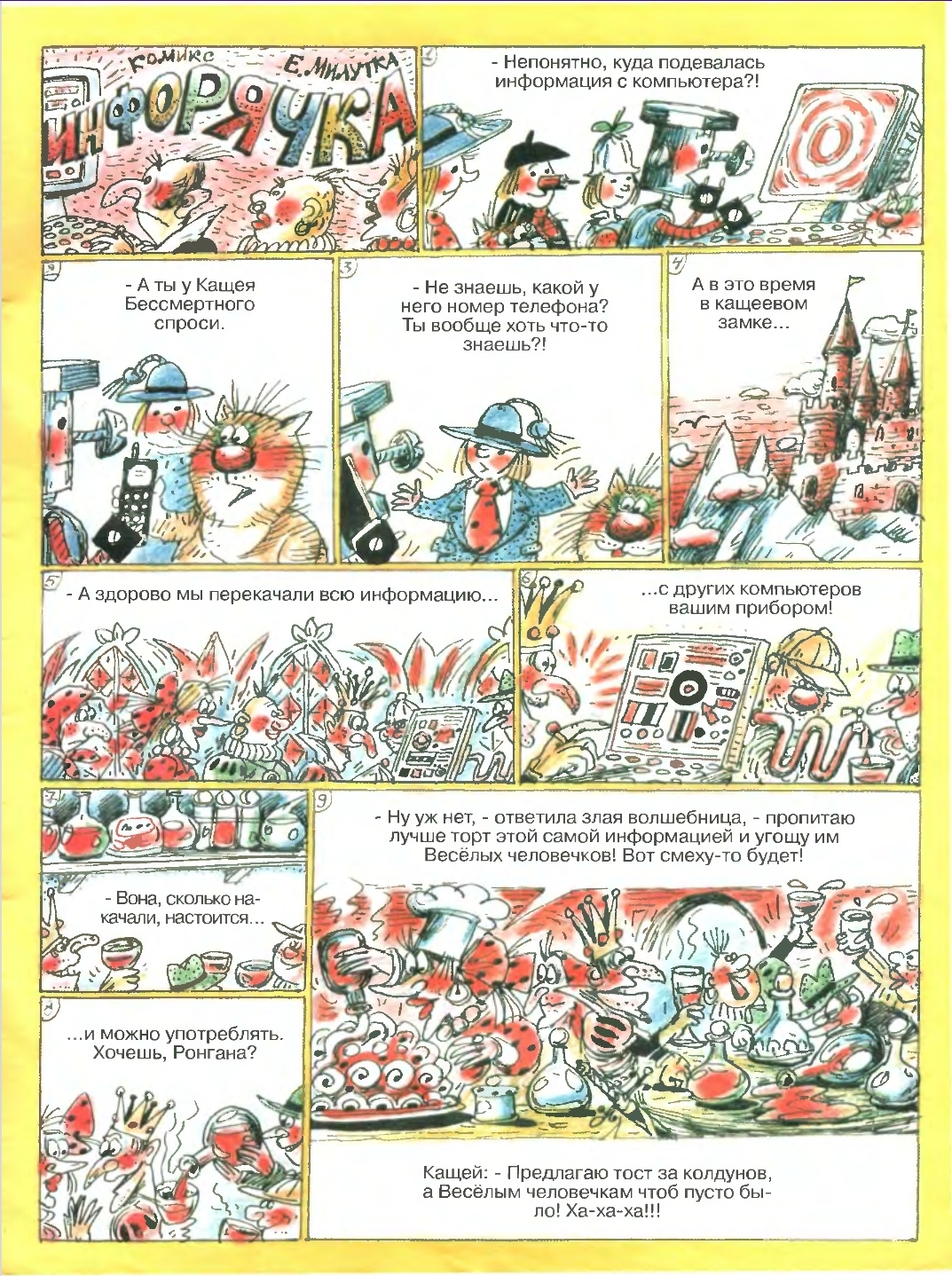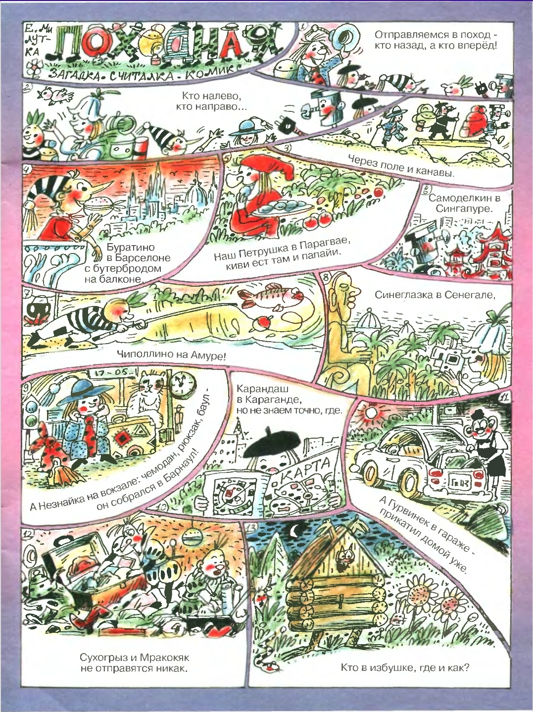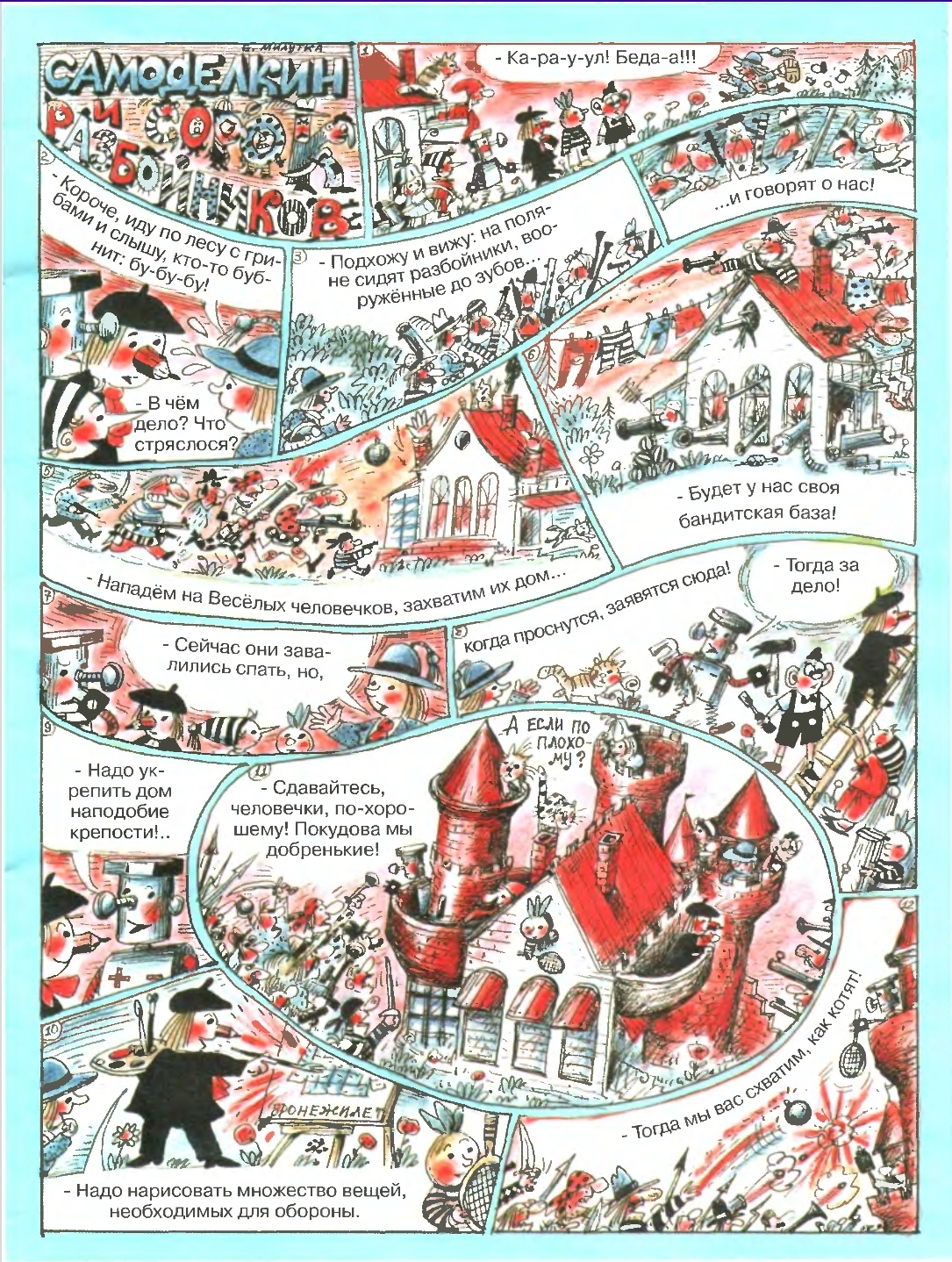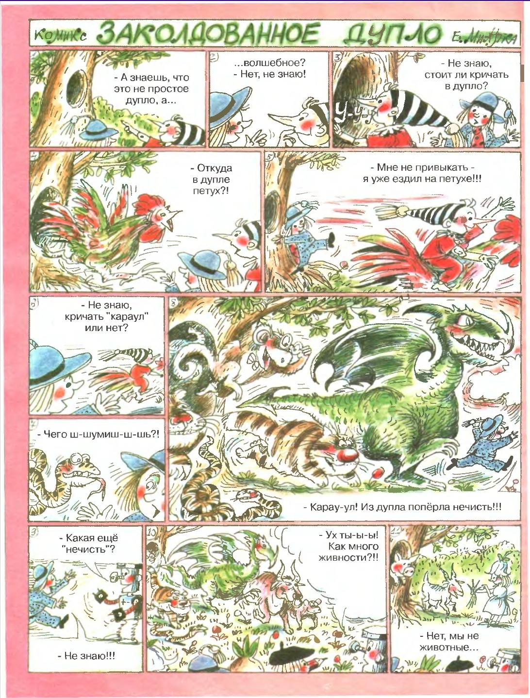 3) Е.Милутка по-прежнему является самым плодотворным автором журнала. Опять даю только по одному листу каждого многостраничного комикса с участием Незнайки (а ведь были и другие материалы).