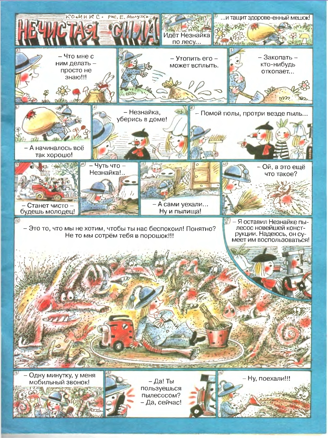Вообще-то, в 2018-2019 гг. в журнале снова появились новые (вроде бы) комиксы Милутки. Достойных Незнаек от других художников я так и не заметил. Но это тоже был пройденный этап: Милутка и все остальные.
