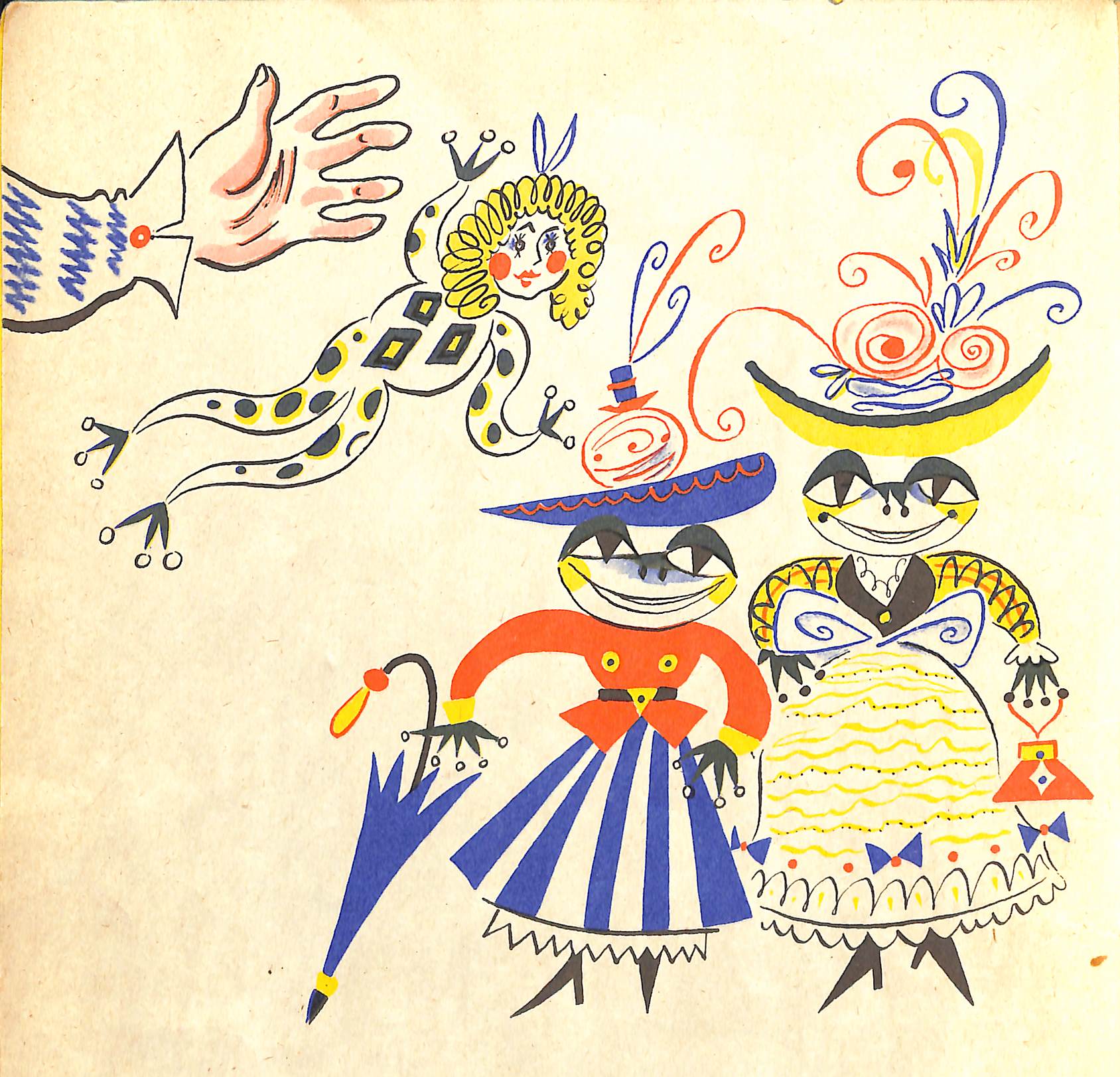 Рисунки интересные. Я уж начал думать, что источником вдохновения были какие-то старинные корейские образцы. Но посмотрел на насекомых, среди которых муха и паук. Очаровательные твари. Однако в те годы такие насекомые у нас и присутствовали, например, в "Мухе-цокотухе".