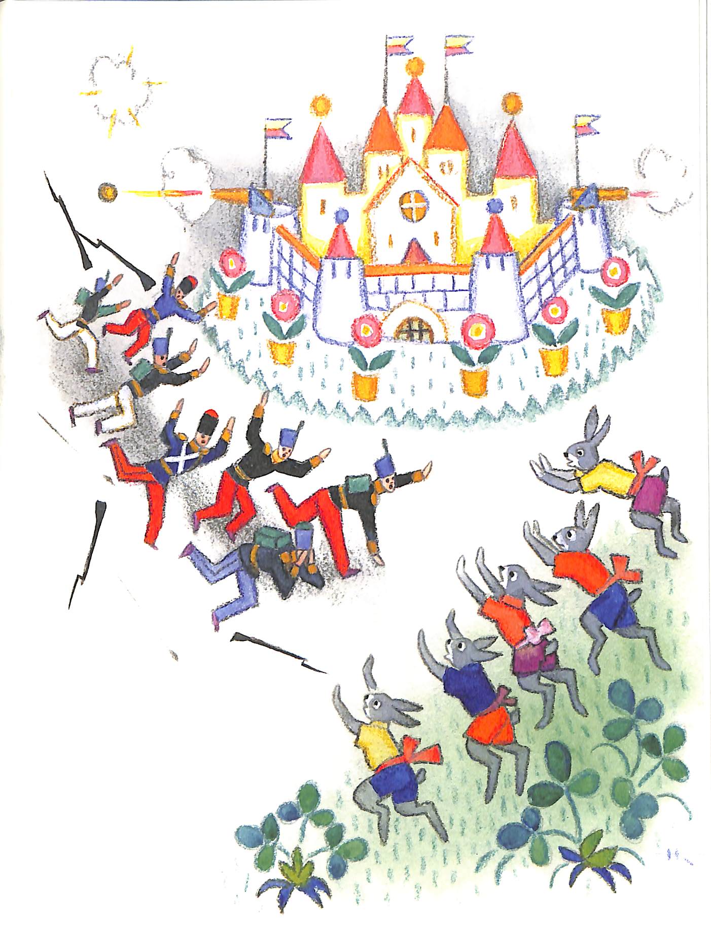 Напали на город, в котором жил мастер Озорник, злые враги. И конечно же, солдатики, которым нужно было охранять город, испугались и побежали в лес. Тут-то их и встретили зайцы.