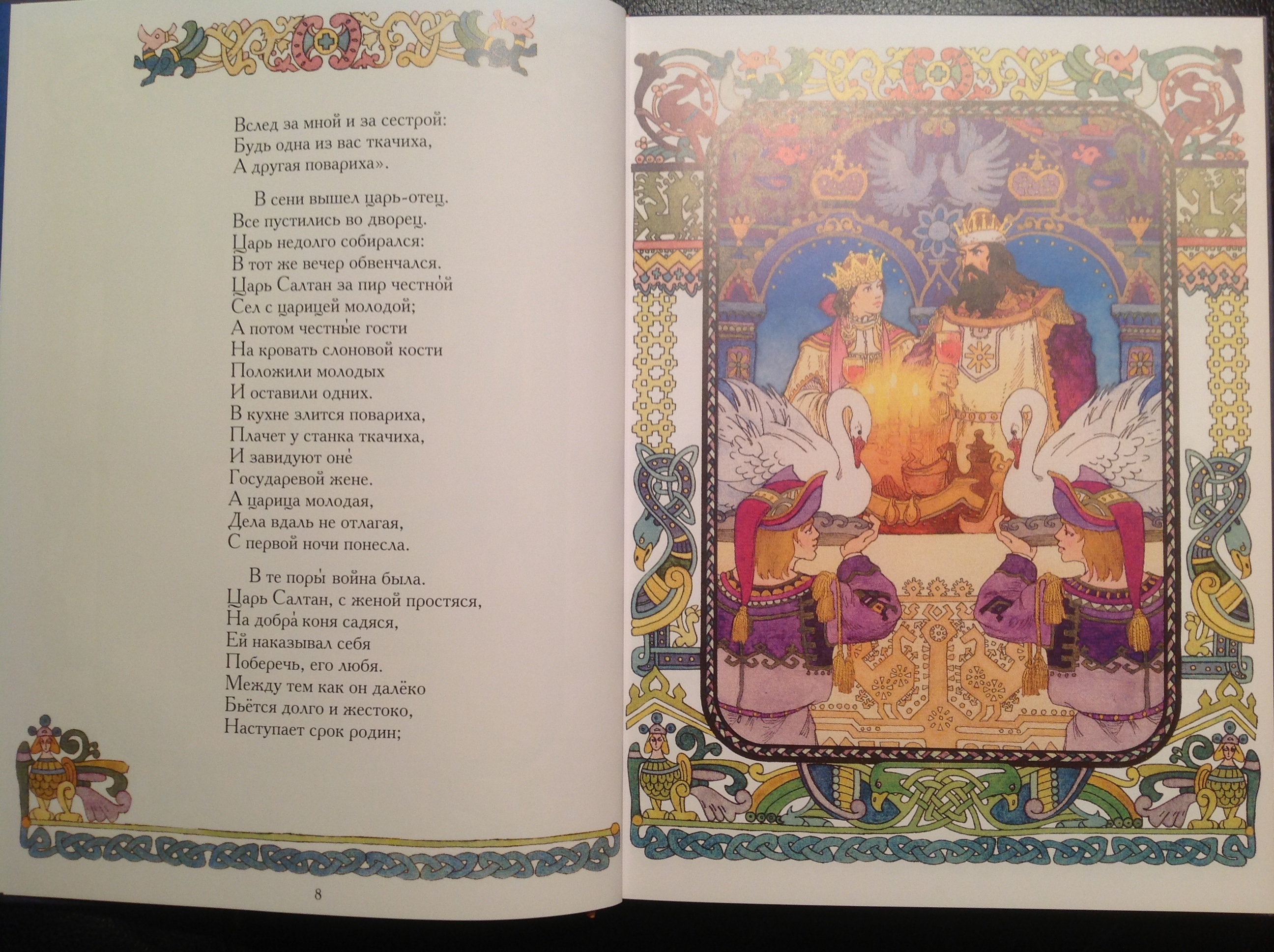 Особенность всей книги — рисованные рамочки, все разные, даже для одной сказки несколько вариантов.