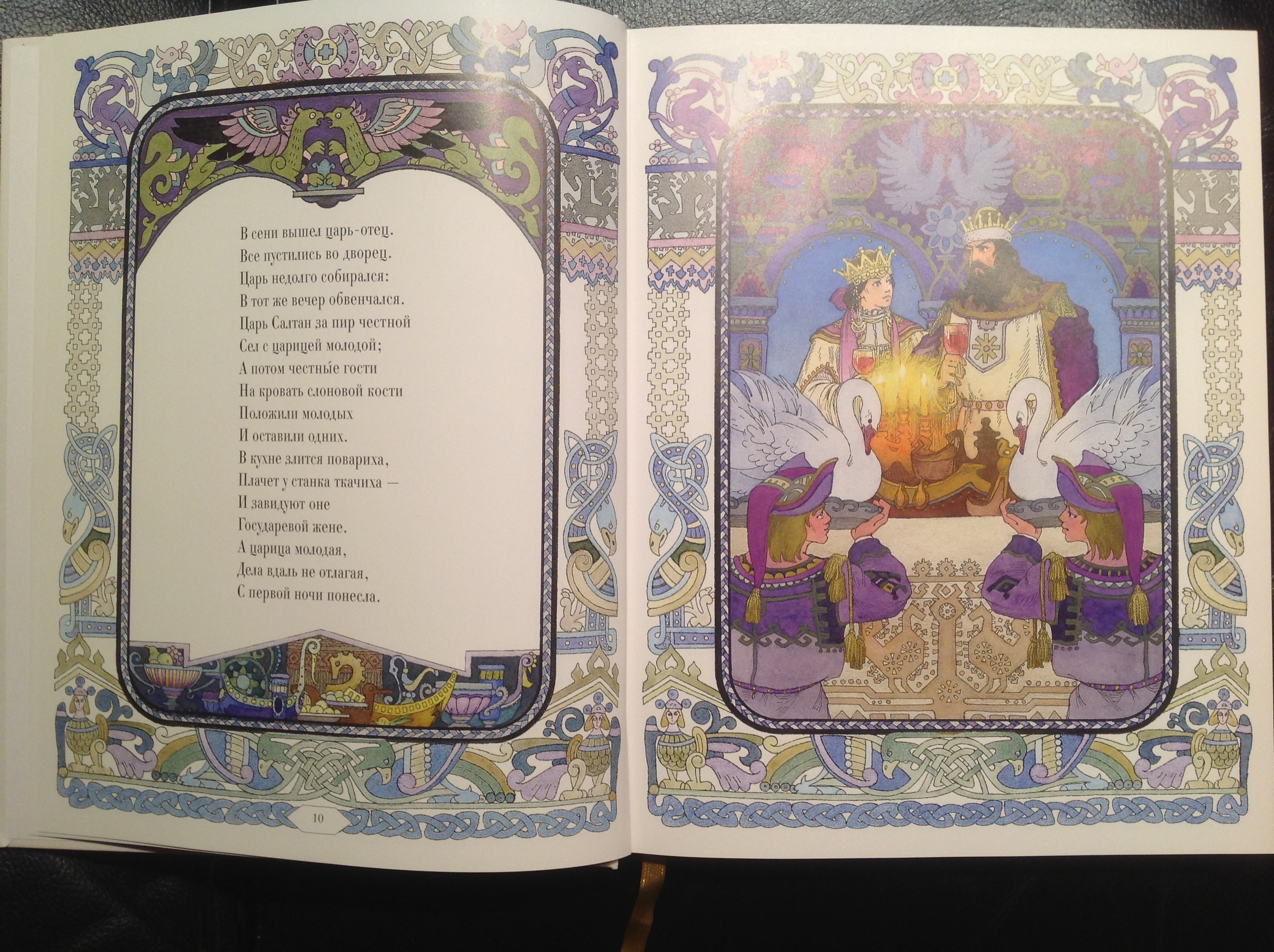 А рамочки — это фишка назаруковской сюиты. Во-первых, это красиво. Такое чувство, что художник на спор рисовал рамочки, которые не похабили бы книгу. Никто не верил, но Назарук спор выиграл. Он разрешил загадку рамочек: они должны быть самостоятельным произведением искусства (поэтому у Билибина получалось, а у современных оформителей книги — нет).