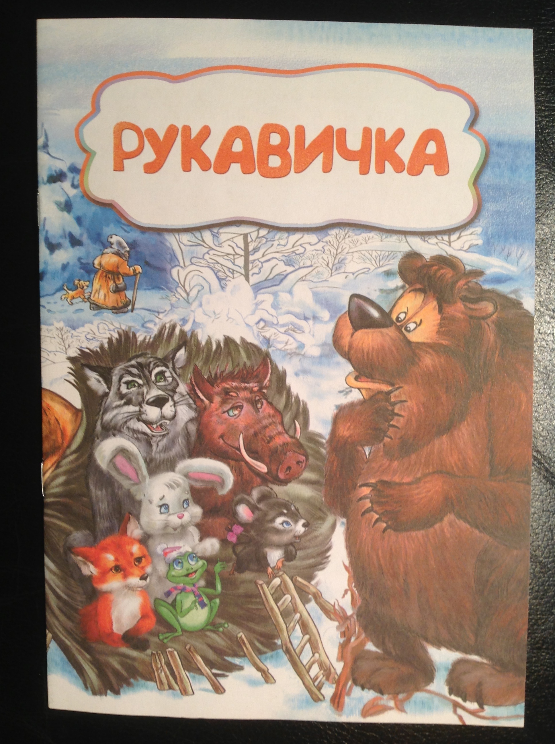 Перейдём к украинской "Рукавичке". Эту сказку у нас любят, издают часто. Напоминаю сюжет: холодной зимой человек (крестьянин или охотник) пошёл в лес с собакой, потерял по дороге рукавицу, в неё последовательно набиваются звери от мышки до медведя (кабан обязательно присутствует). На обратном пути собака находит потерянную рукавицу и лаем выгоняет всех зверей. Человек забирает рукавицу и продолжает свой путь.