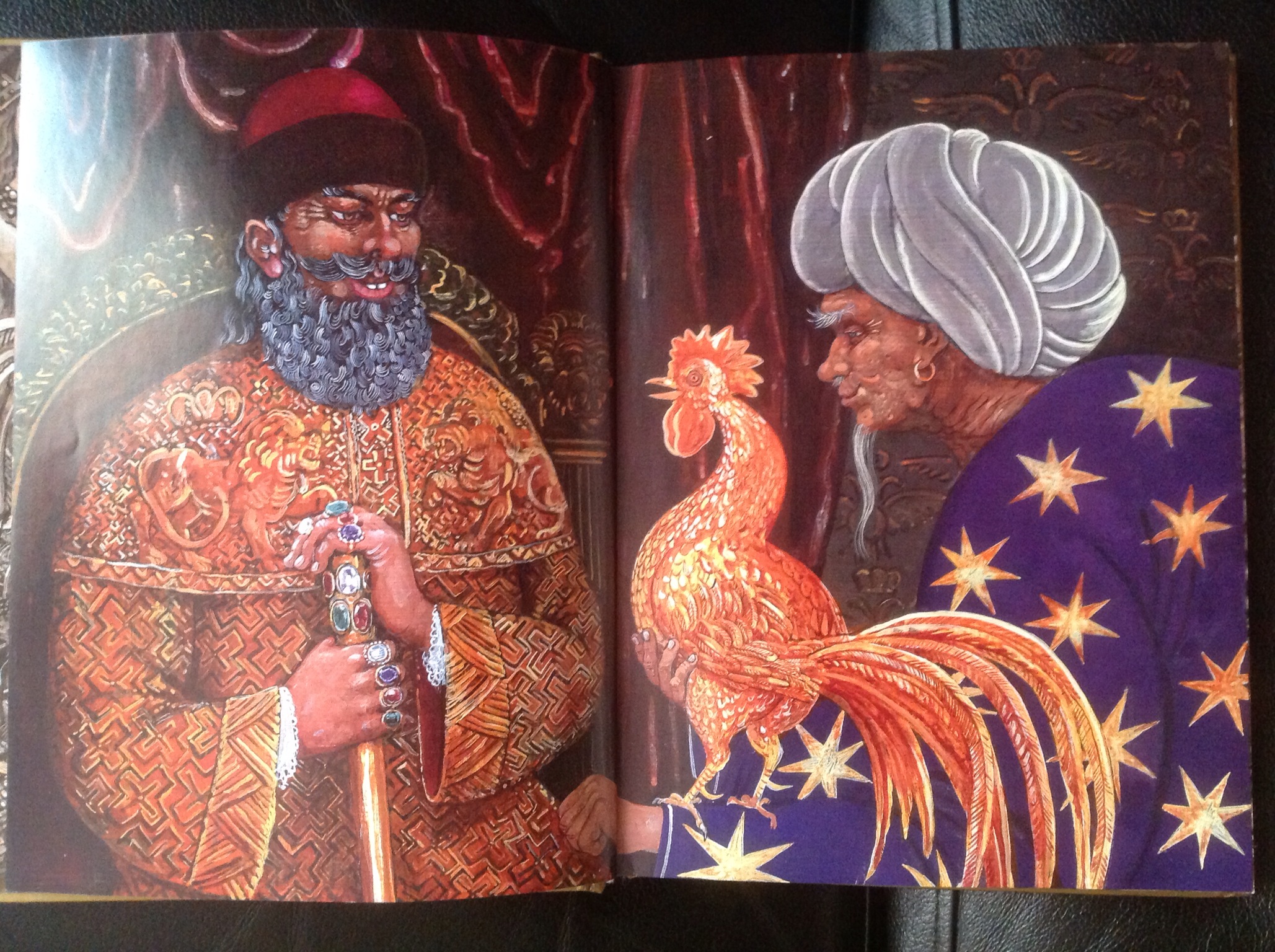 Иллюстраций немного — но если есть, то они занимают целый разворот. Вот два разворота к "Золотому петушку".