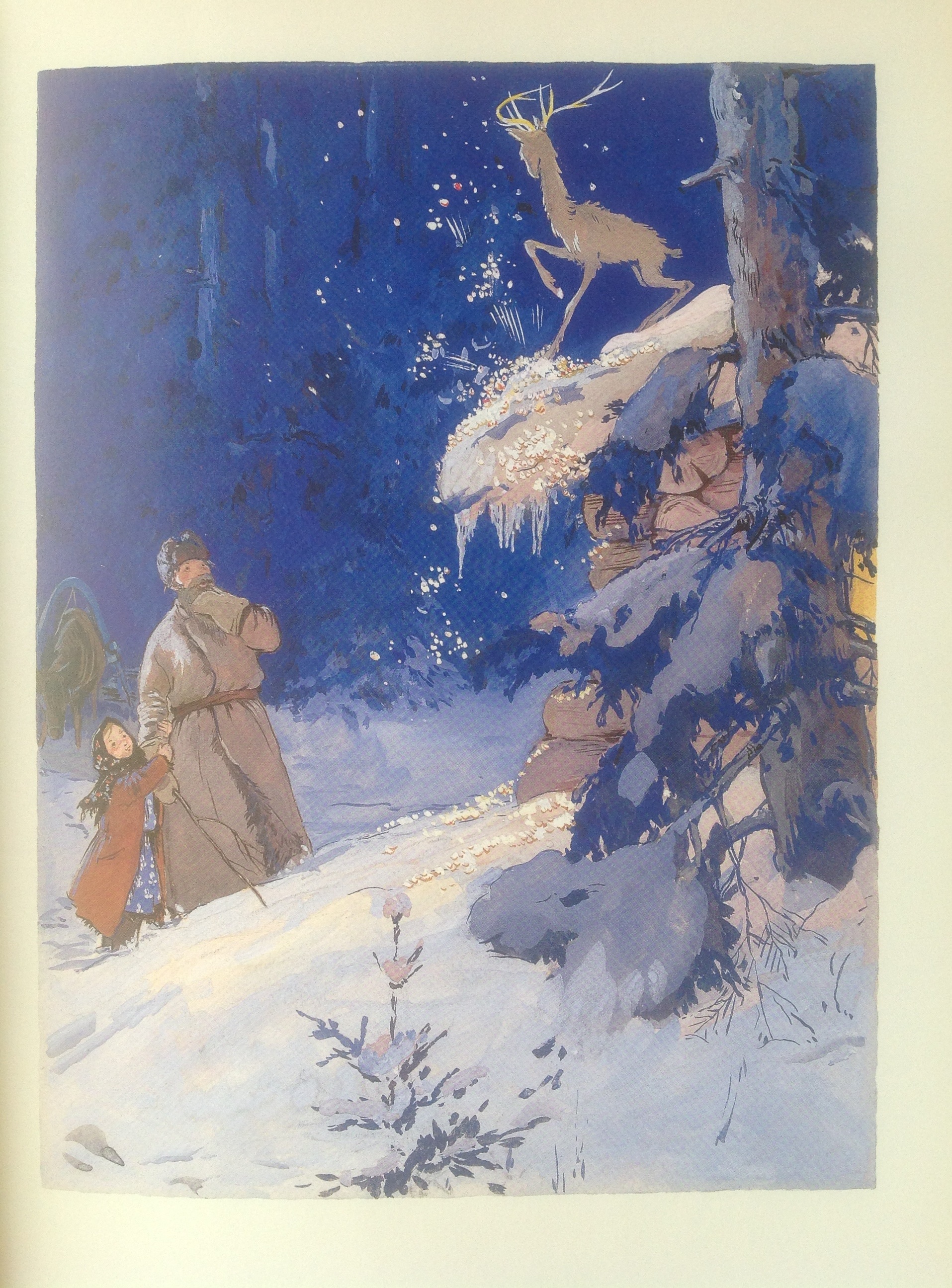 Вот и всё. Что-то не захотела Успенская по новому перерисовывать "Серебряное копытце". Будем дальше смотреть, как другие художники управились с "Серебряным копытцем" — редким примером этнографической сказки, гармонично вошедшей в большую русскую литературу.