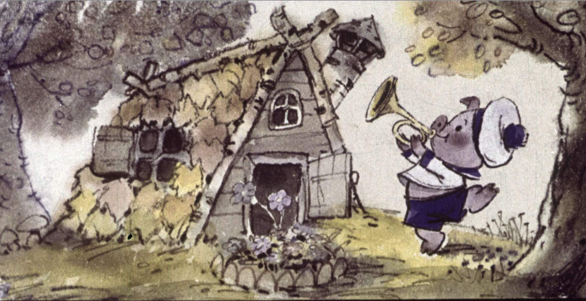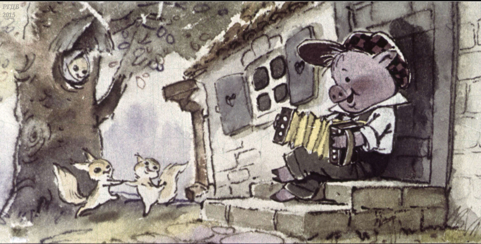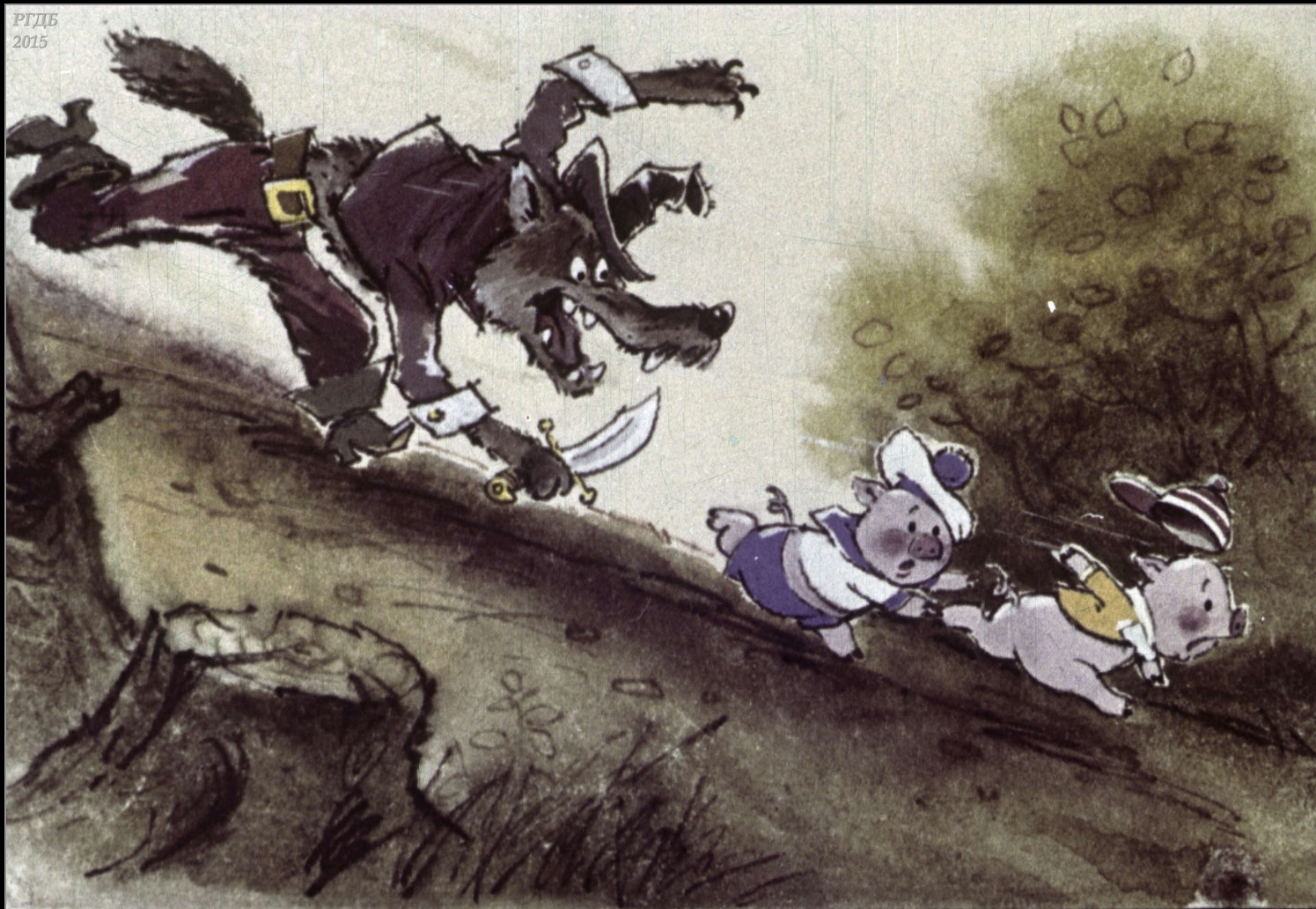 Полюбовавшись в прошлый раз на картинки всеми обожаемого А.Савченко, я открыл давно отложенный диафильм на сайте РГДБ: https://arch.rgdb.ru/xmlui/handle/1234567.... Диафильм, понятно, "Три поросёнка". 1965 год. Художник Б.Степанцев. Мне до сих пор не встречавшийся. Разительное сходство с персонажами Савченко, да что там с персонажами — с манерой Савченко, причём задолго до Савченко. Пришлось разбираться.