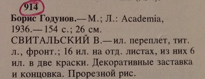 1) Художник Н.Купреянов — известный представитель "мирискуснического" направления. Книга "Борис Годунов" вышла в 1923 году в государственном издательстве.