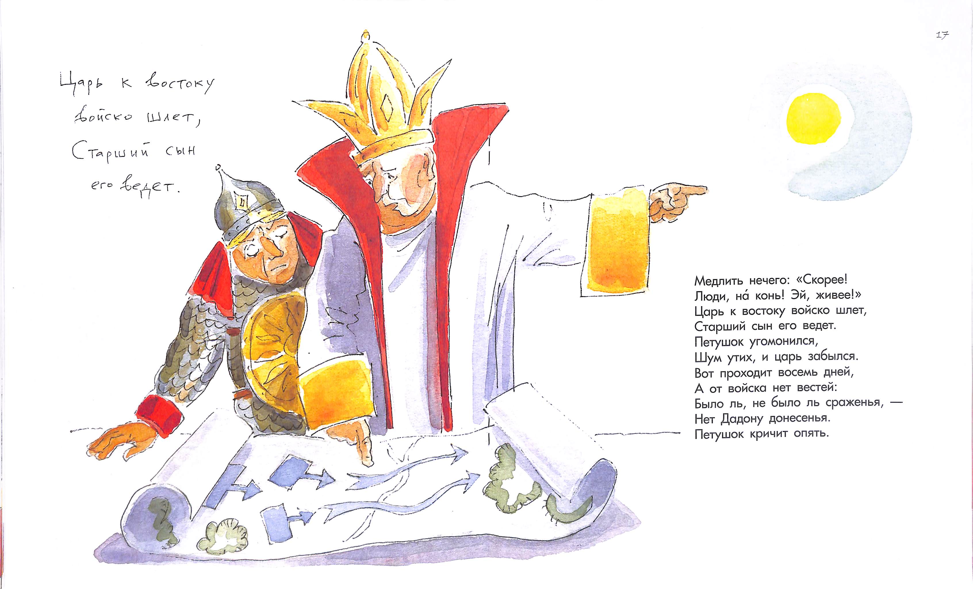 А вот дальше — стоп. У художника включается автоцензура. Самый драматический момент: царь Дадон вышел со своим войском к полю битвы.