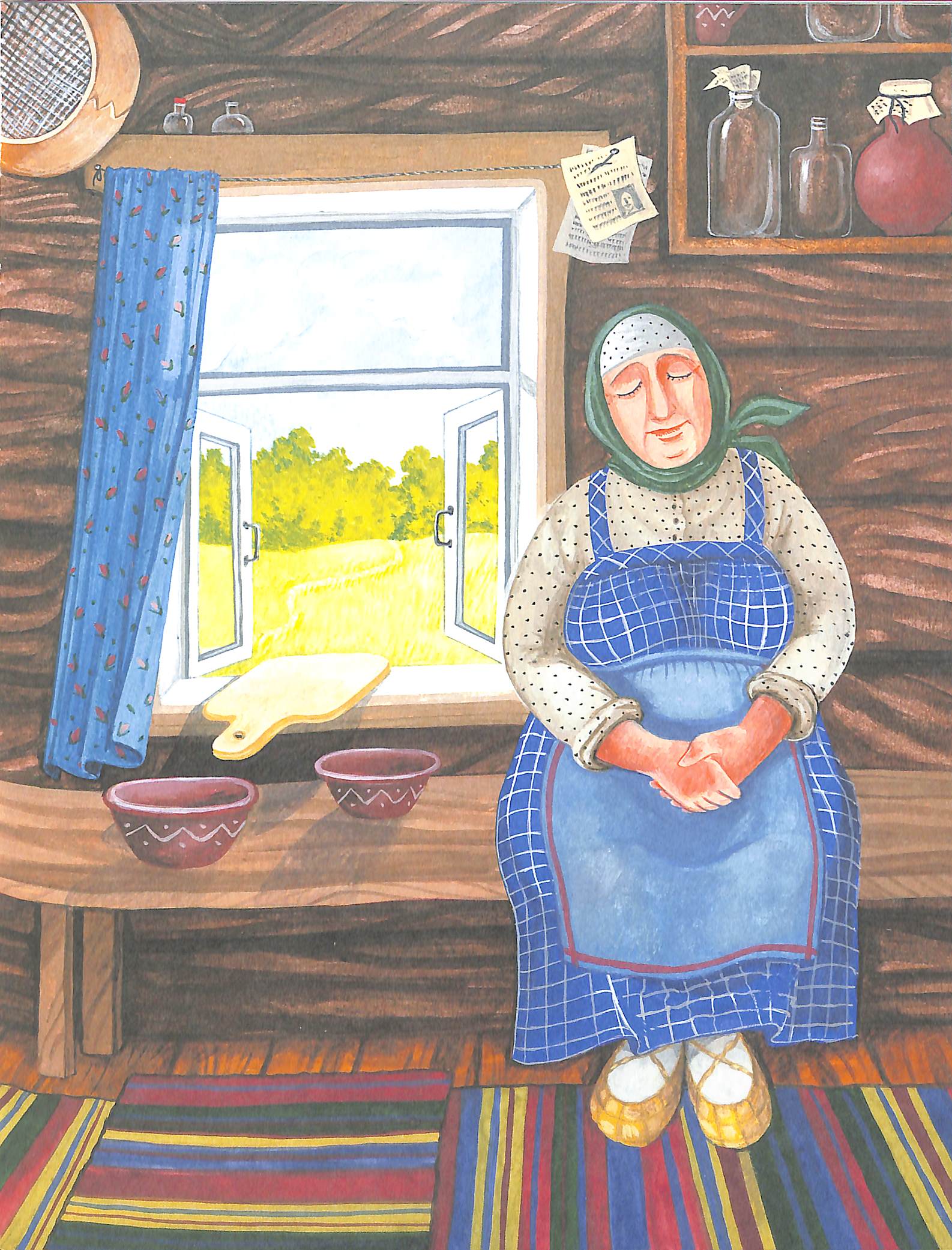 Дед, баба да мышка. Размеренная сельская жизнь. Колобок, возмутитель спокойствия, видать, уже удрал.