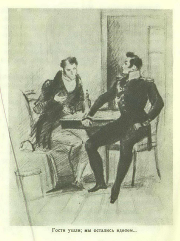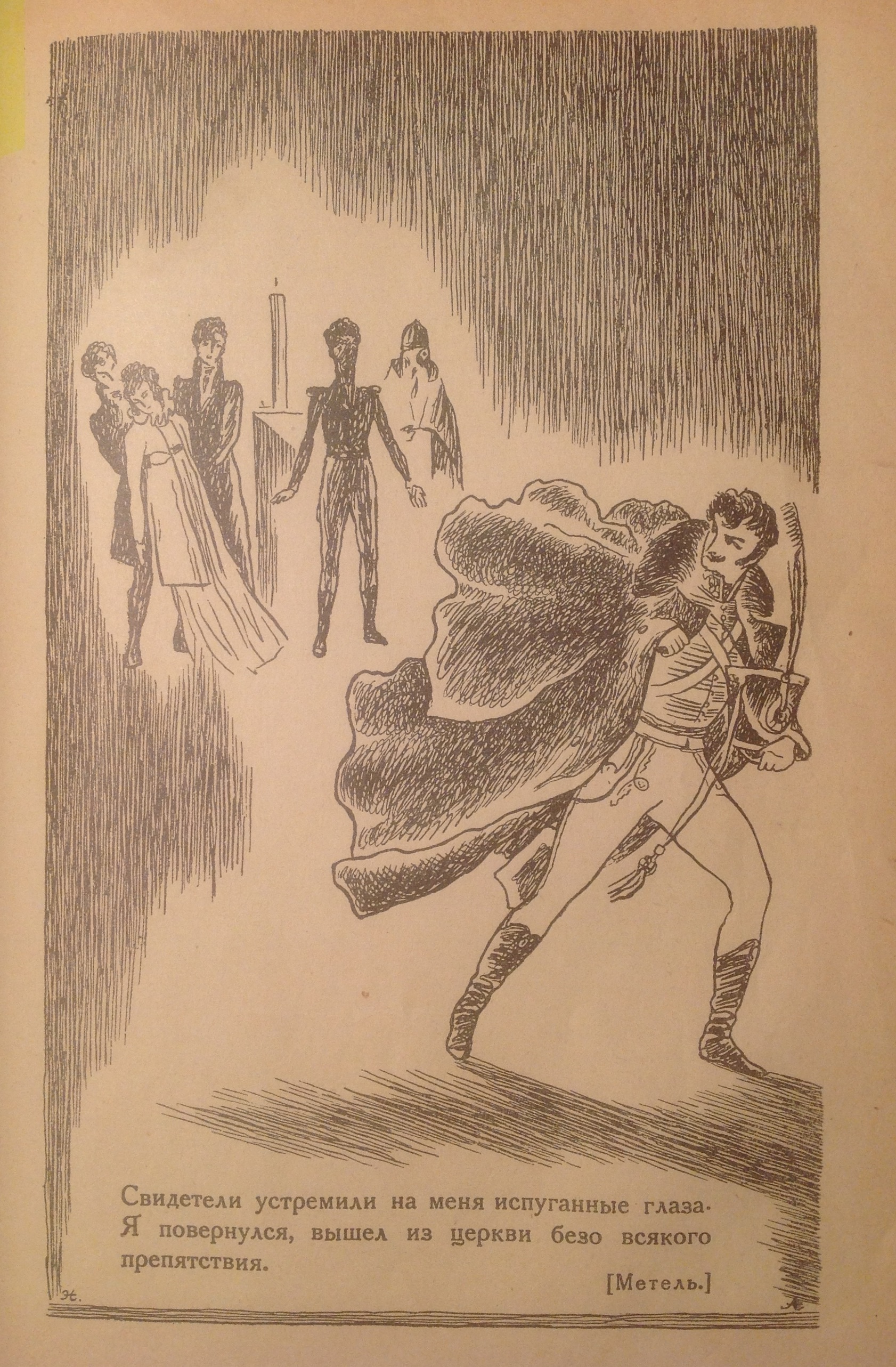 Две иллюстрации: заставка и концовка. Заставка — сцена второй дуэли, когда жена графа уже прибежала на звук выстрела (и для начала "с визгом бросилась ему на шею"). Эта сцена становится обязательной для иллюстраторов.