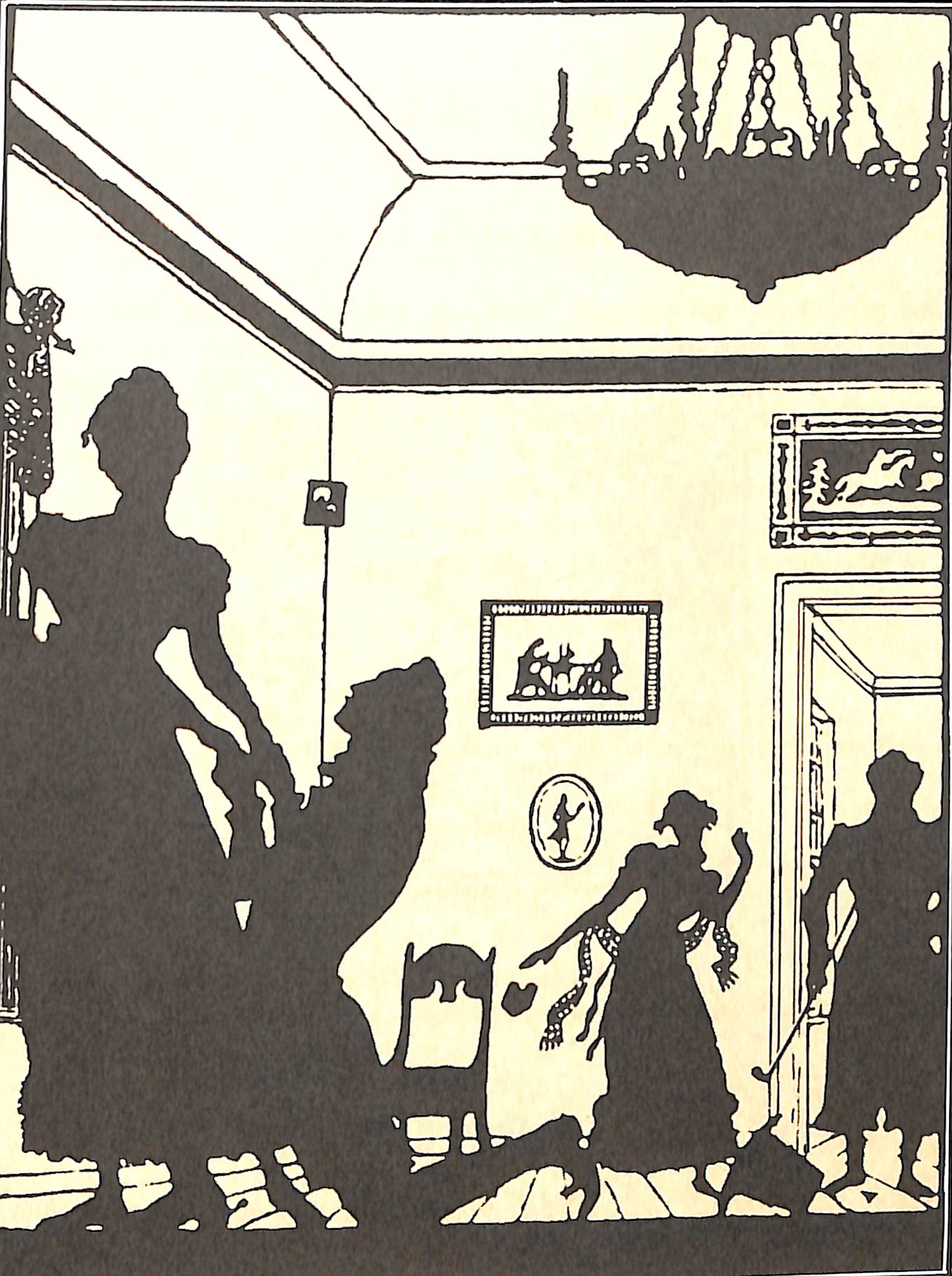 В иллюстрациях к "Повестям Белкина" в этом сборнике много отсебятины — к "Барышне-крестьянке" поместили дополнительно два рисунка Добужинского из других циклов. Однако нужные нам силуэты там со всеми мелкими деталями — сканы даю из этого издания.