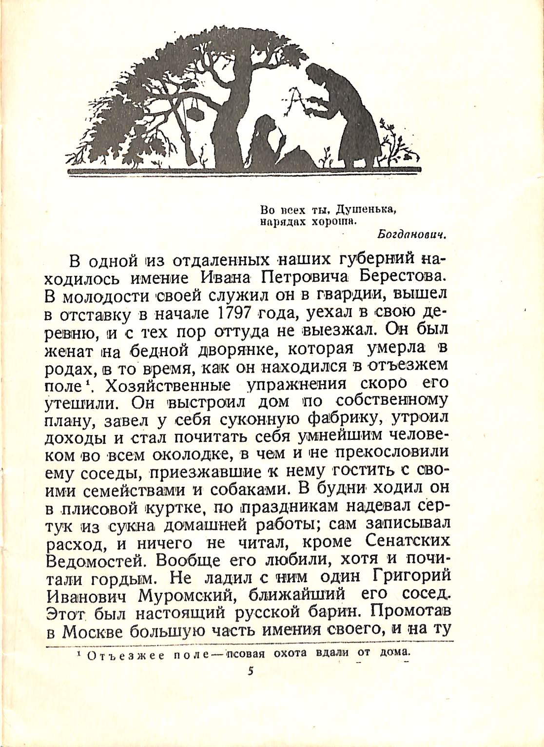 Хижинский, вероятно, не думает, что в этой повести надо в иллюстрации создавать напряжение (а ксилография к этому способна в силу своей угловатости). Милый русский подлесок.