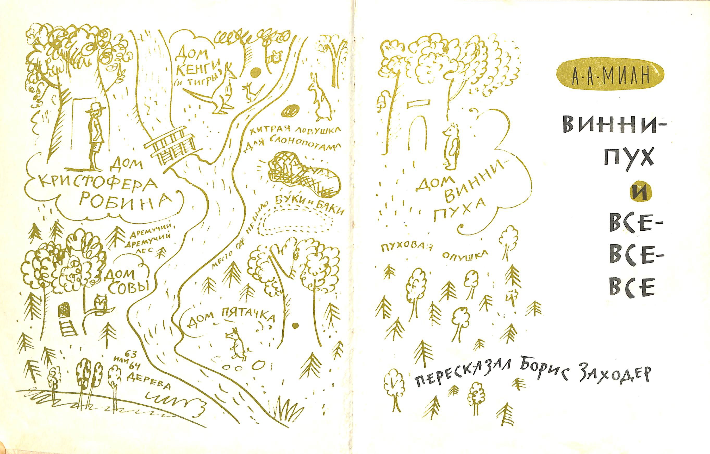 В издании 1986 года был макет книги с форзацами и всякими вводными листами. На форзаце Пух в тумане.
