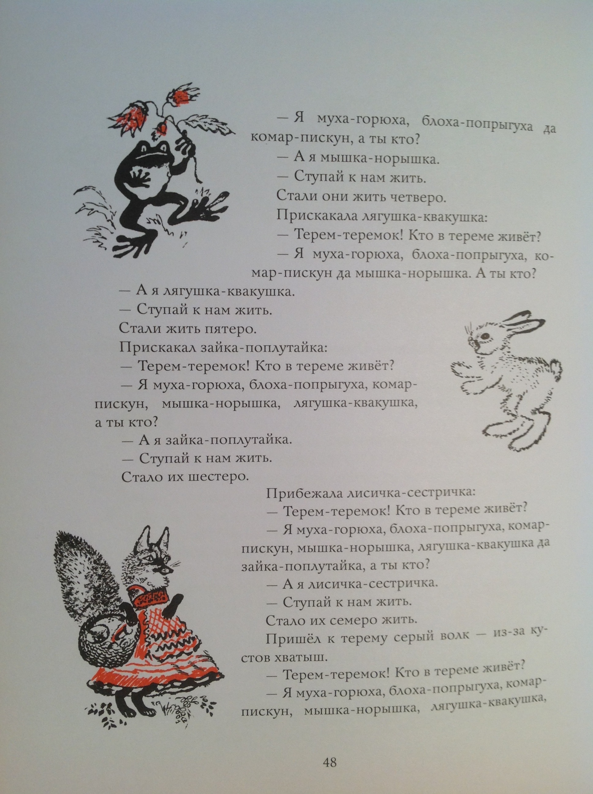 В этой книге зверюшки у Токмакова в основном статичные, а в "Теремке" просто галерея персонажей. Ну хоть рассмотреть их можно спокойно.