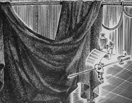 Замечательный советский ксилограф М.Поляков. Офорт к "Моцарту и Сальери" в книге про художника. Выбор фрагмента очевиден.