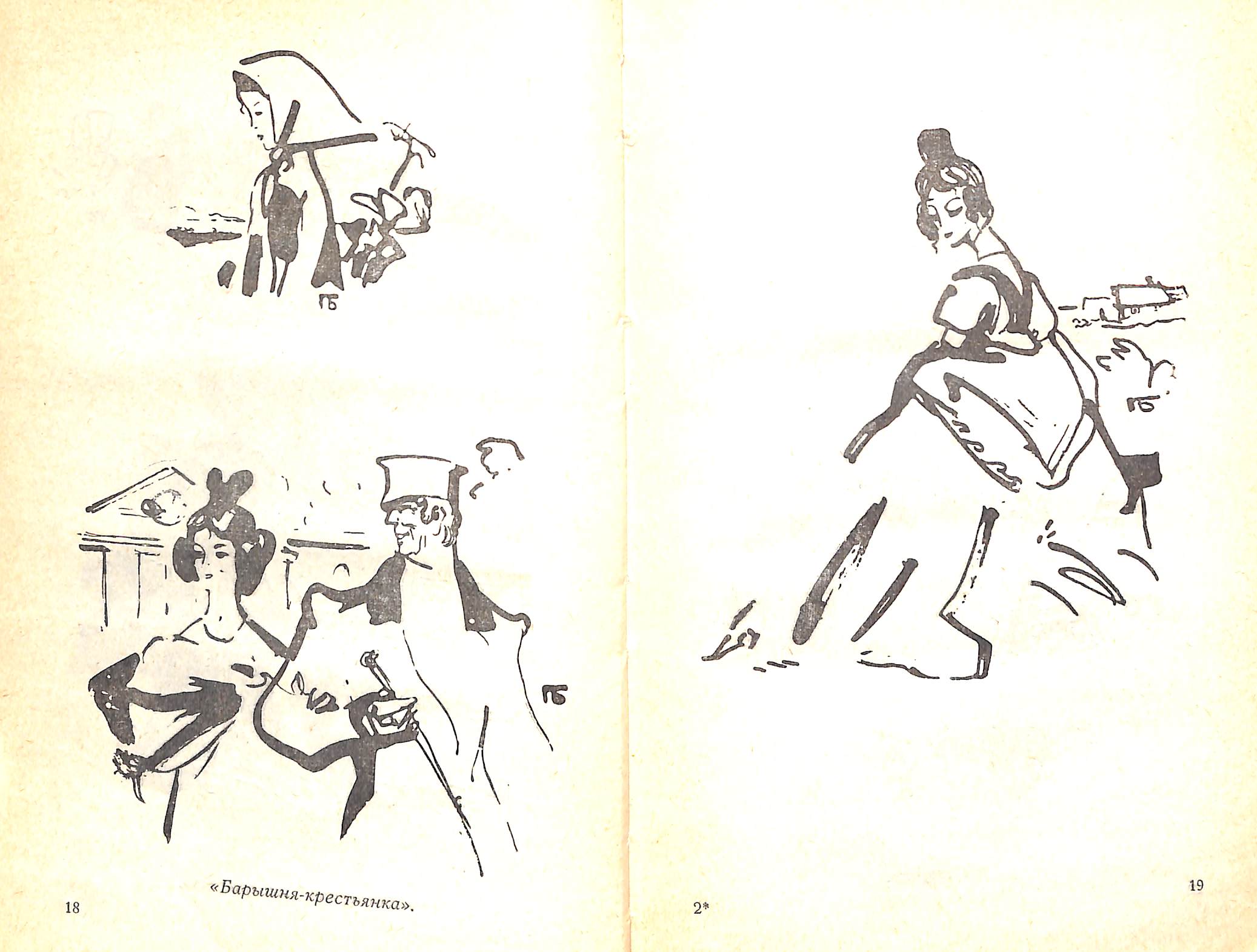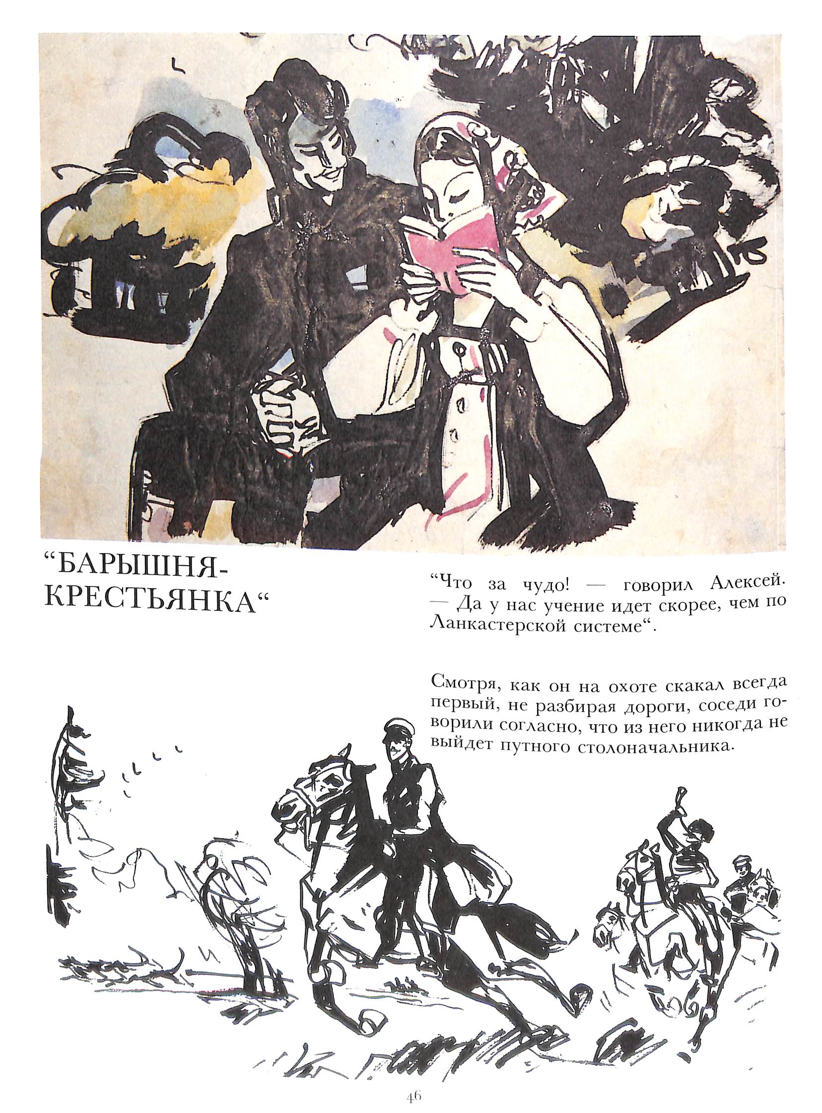 К первым трём повестям цикла Смрнов помимо страничных иллюстраций делал ещё своеобразные развороты с совмещением разных времён повествования. К "Барышне-крестьянке" такого разворота нет. Видимо, не успевал сдать работу в срок.