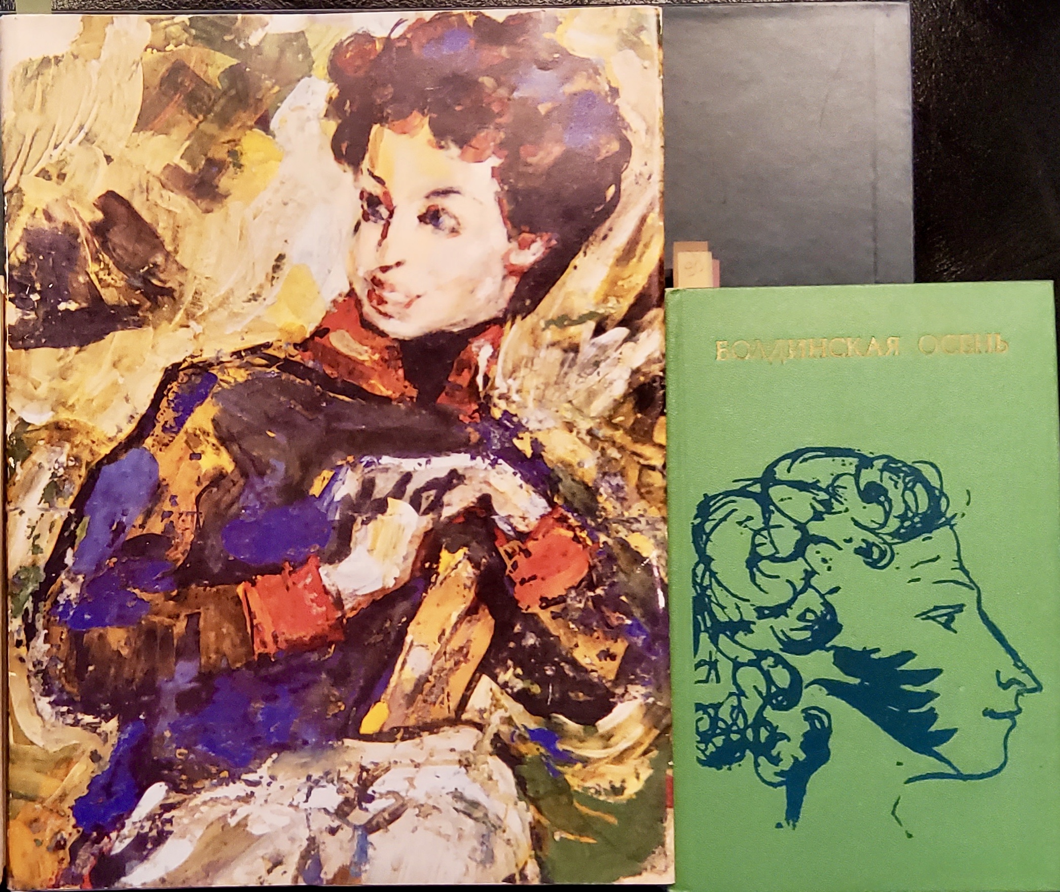 Это (слева направо): "Гениальный сын России: К 200-летию со дня рождения А.С.Пушкина" (М.: "Славянский диалог", 1998); "Болдинская осень" (М.: «Молодая гвардия», 1974).