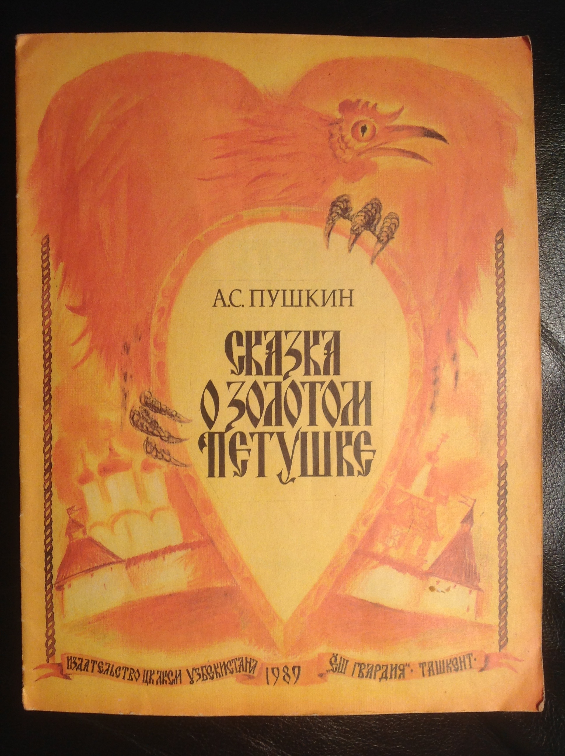 Сказка о золотом петушке. — Ташкент: Издательство ЦК ЛКСМ Узбекистана "Ёш гвардия", 1989. — 24 с.; 28,5 см.