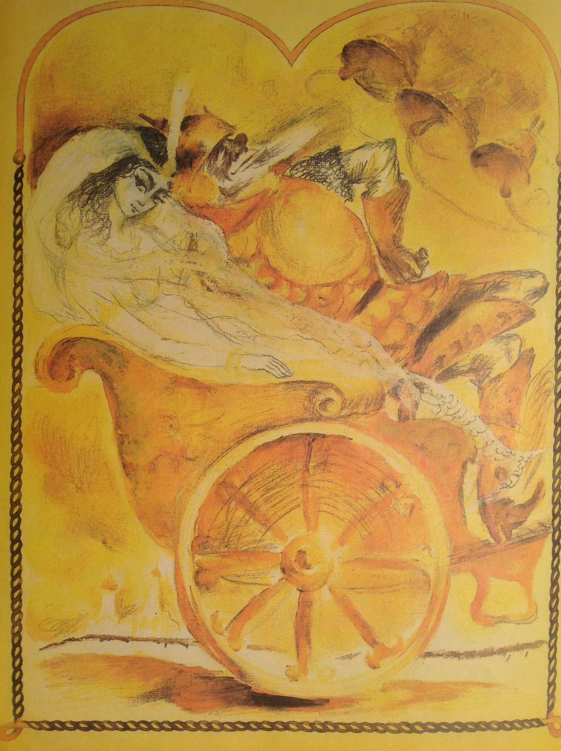 Добавились иллюстрации на вклейке, которые уже отразили сюжет. Брюханов для этого выбрал линию царя и девицы из Шамахани.