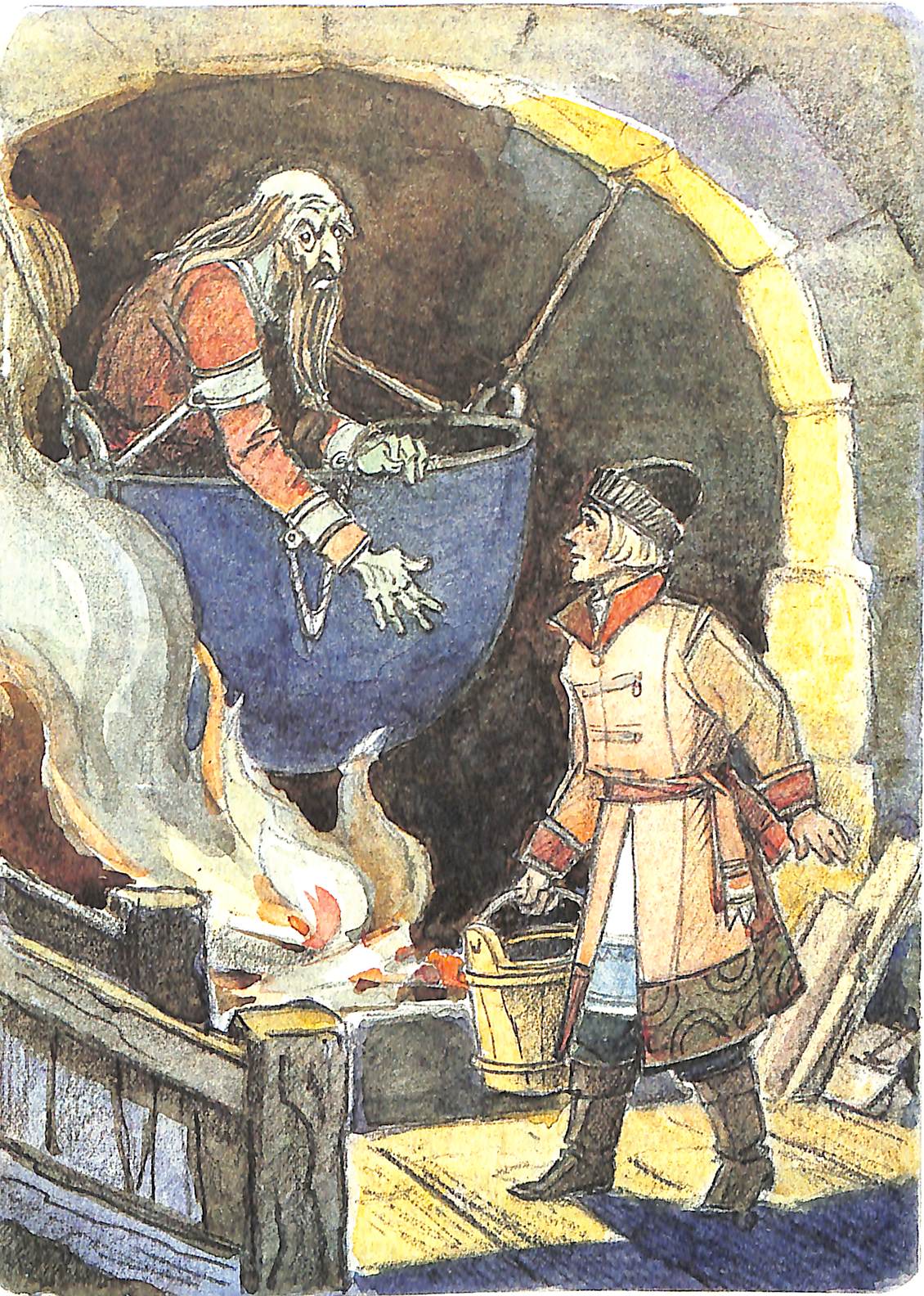 3) Ещё изображения Бабы-Яги. Та же светлая неотретушированная акварель. Но можно увидеть, что Баба-Яга изображается нестрашной.