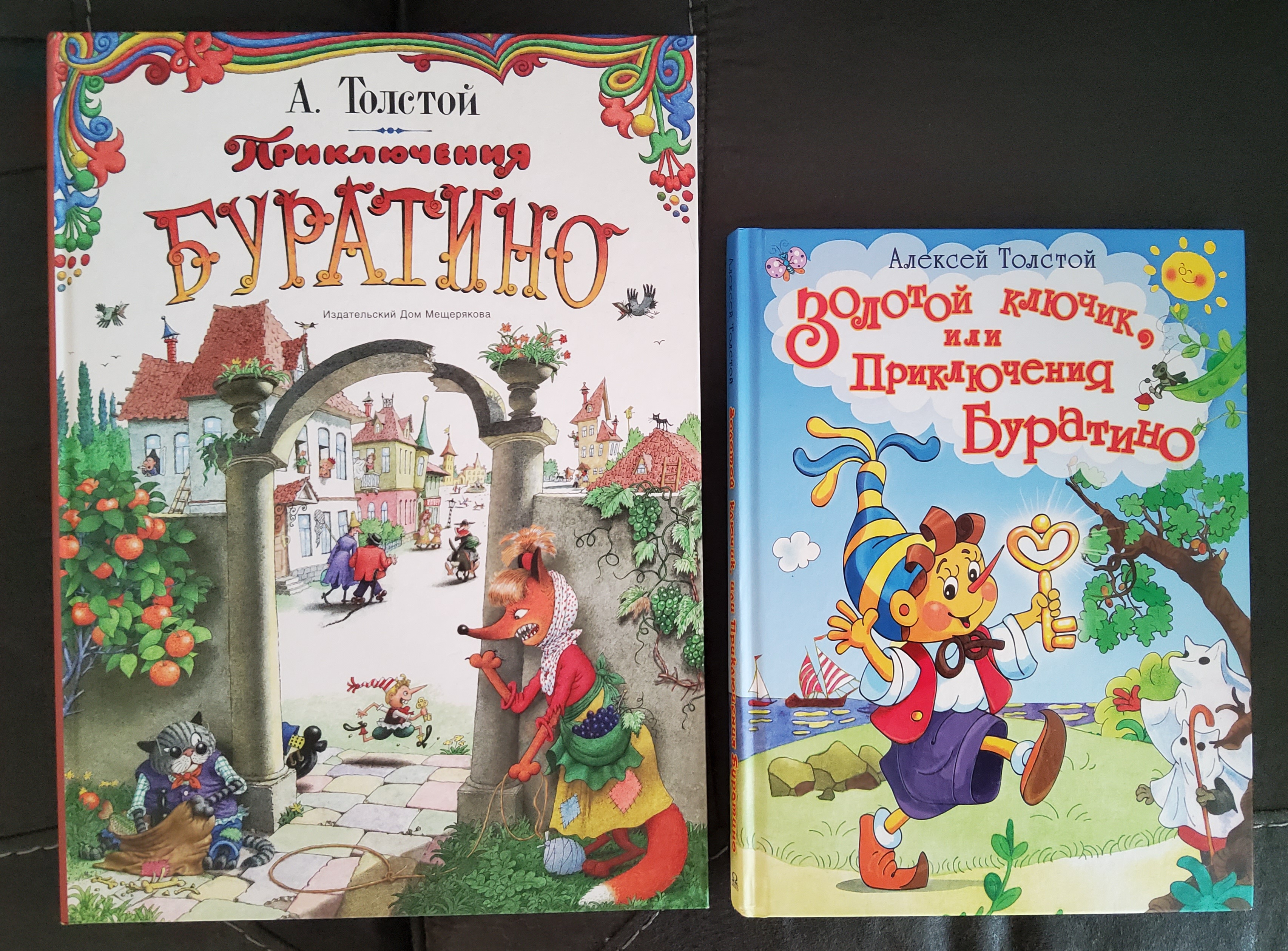 По-видимому, первое издание "Приключений Буратино" с иллюстрациями Огородникова (на титуле с самого начала обозначено соавторство с Е.Огородниковой) было выпущено в 2002 году "Дрофой". Затем эта сюита несколько раз издавалась "Ониксом", переиздаётся и сегодня "Росмэном". У меня прекрасное очень большого формата издание от Мещерякова (2009). Тогда же примерно в "Омеге" появилась и книга с иллюстрациями Полухина. Тоже переиздаётся до сих пор, всё в той же "Омеге". У меня — издание 2018 года.