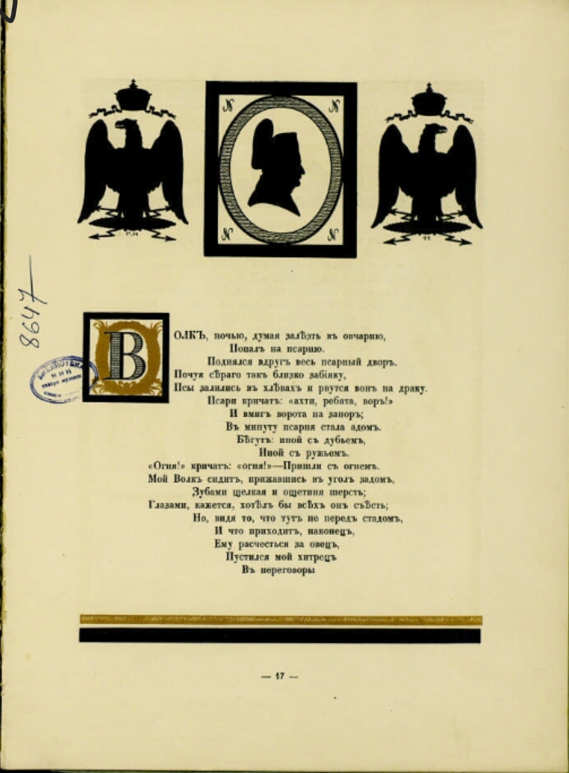Иллюстрации Нарбута призваны были вернуть басню в исторический контекст. Рисунки из сборника "Спасенная Россия по басням Крылова". Столетний юбилей. Пышное оформление.
