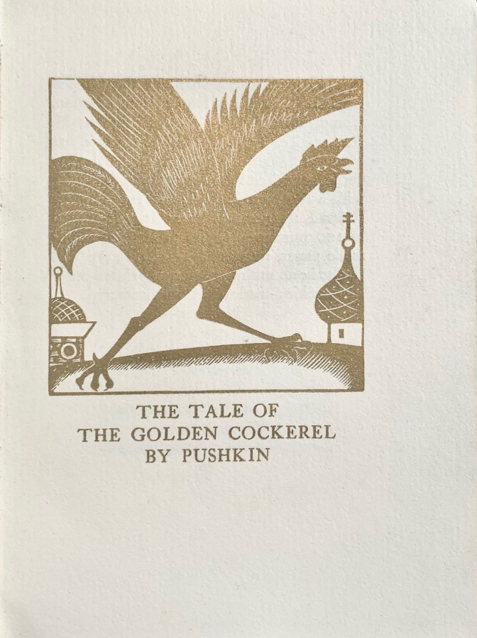 Прочёсывая Интернет в поисках завалявшихся "Золотых петушков", вышел на книгу, изданную в США издательством Dover Publication Inc. (2013). Почему-то книги этого издательства продаются в наших магазинах. Когда-то приобрёл републикацию "Онегина" 1943 года (см.). Этот "Золотой петушок" — тоже репринт с издания 1938 года. Интересная специализация у издательства "Довер". Купил я этого американского "Золотого петушка", несколько дней назад он прибыл.