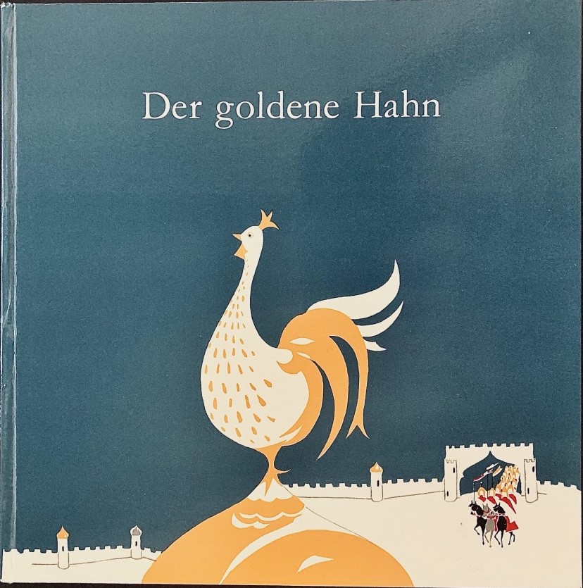 Чехословацкое издание времён "соцлагеря". В Шестидесятые годы для советских художников чехословацкая иллюстрация была откровением. Это было знакомство с настоящей передовой европейской графикой. Этот "Золотой петушок" оформлен лаконично. Но какая артистичная лёгкость рисунка!
