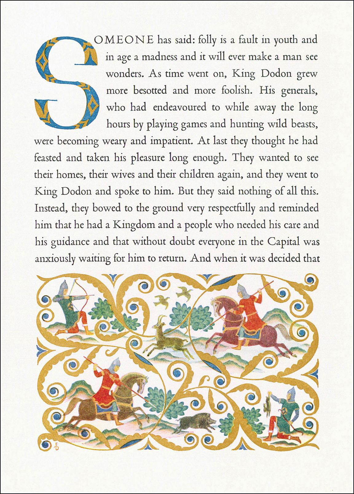 Внезапно в более-менее средневековую сказку врываются ничем не закамуфлированные диснеевские персонажи. Ничем не ограничен был в своей фантазии Погани-художник.