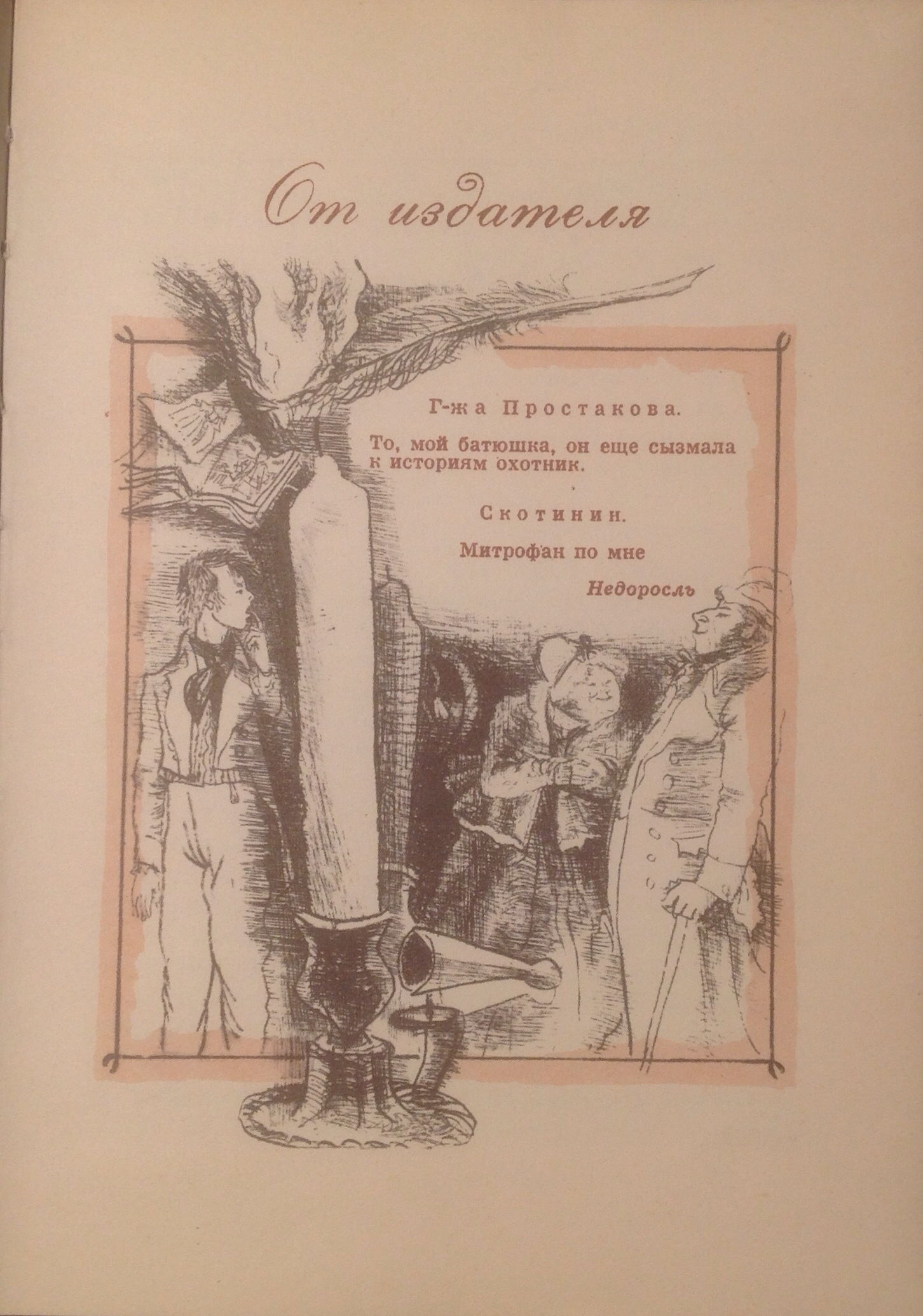 Картинки к вступлению "От издателя" даны в модном в те годы стиле иллюстрирования, где критика особенно отмечала Кошкина и Костина (у Берштейна манера ближе к Костину): старинные безделушки, пустые комнаты...