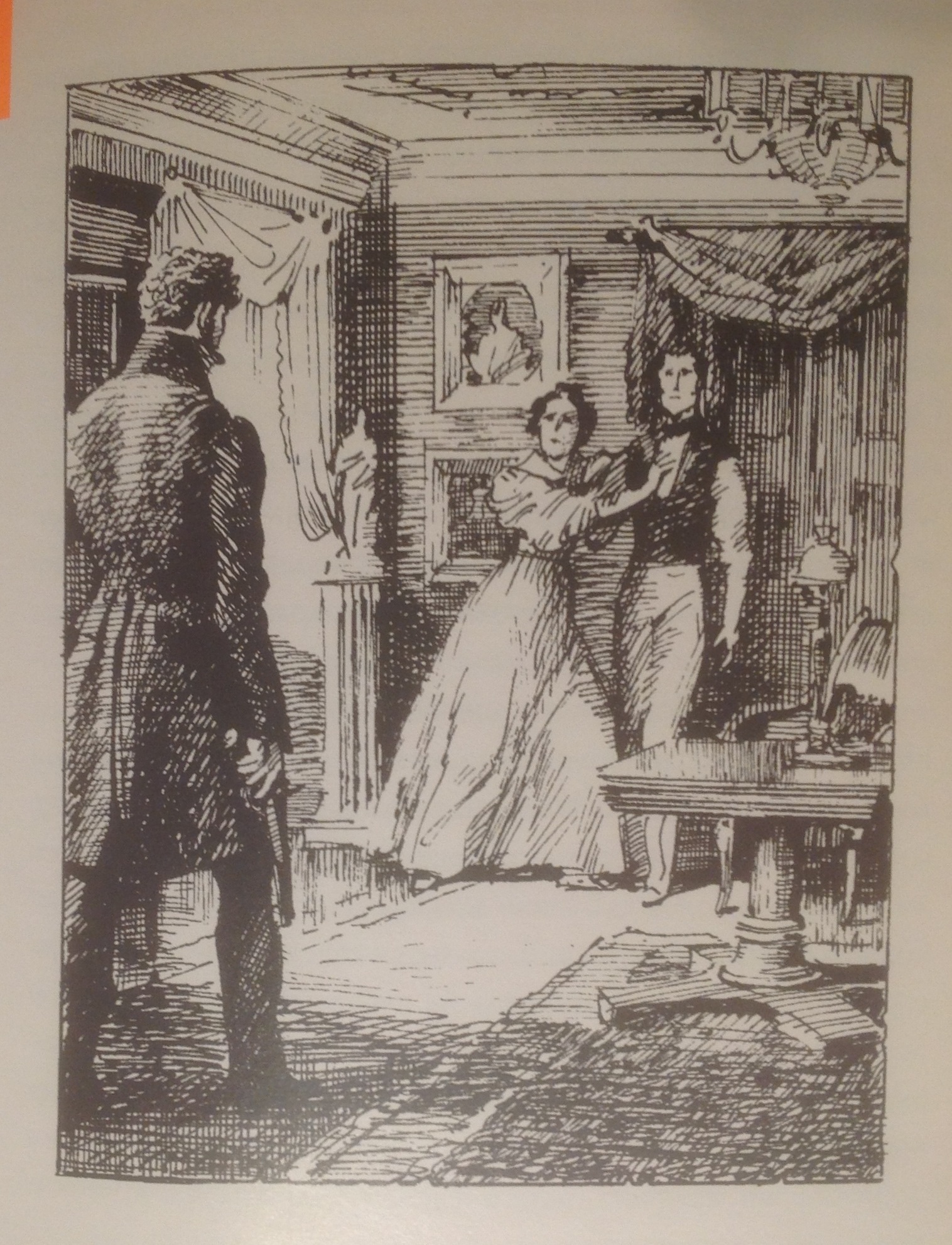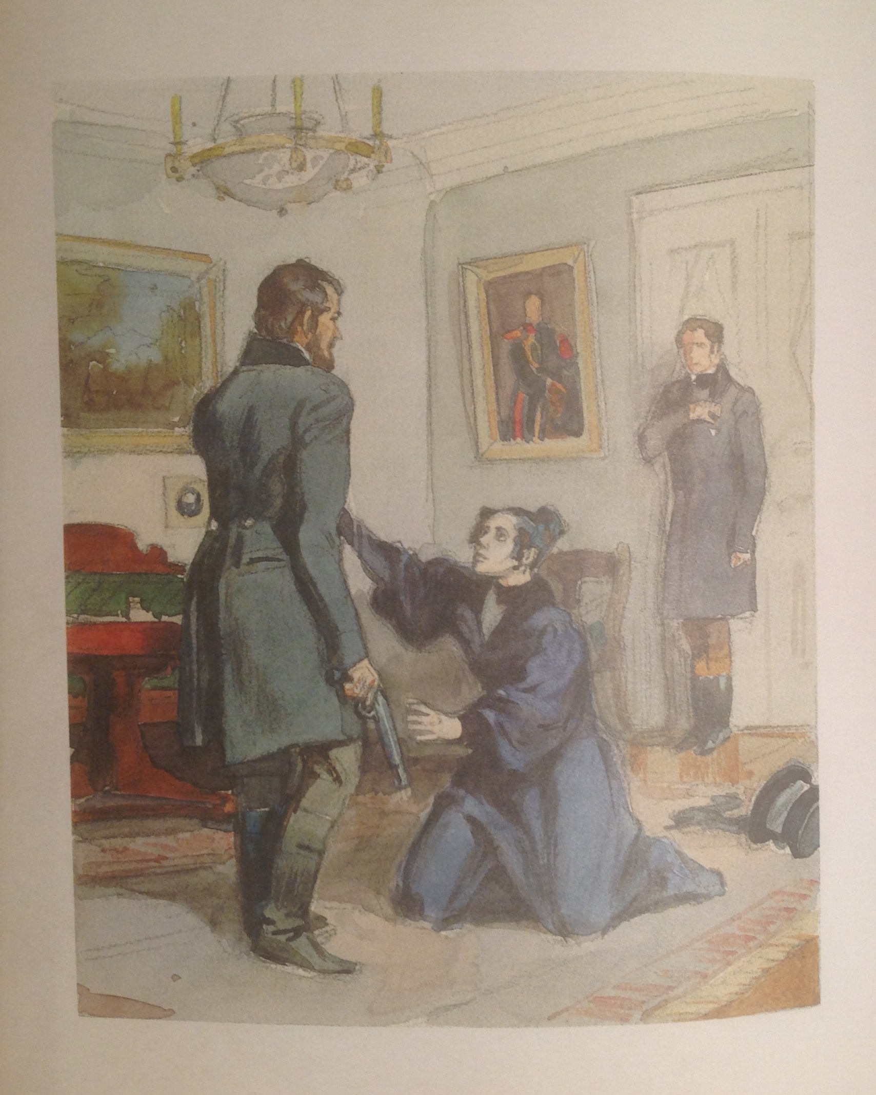 В самом конце повести перепутаны иллюстрации — три картинки идут в таком порядке: "Германн за игрой", "Германн прячется у Лизы", "Призрак является к Германну". Конечно, иллюстрации гротескные, не сразу сообразишь, что они изображают. Но ошибка очень неприятная. Равнодушие и невежество — у помпезных издательств это встречается. У непомпезных издательств тоже встречается, но им прощаешь, а здесь классовая ненависть...