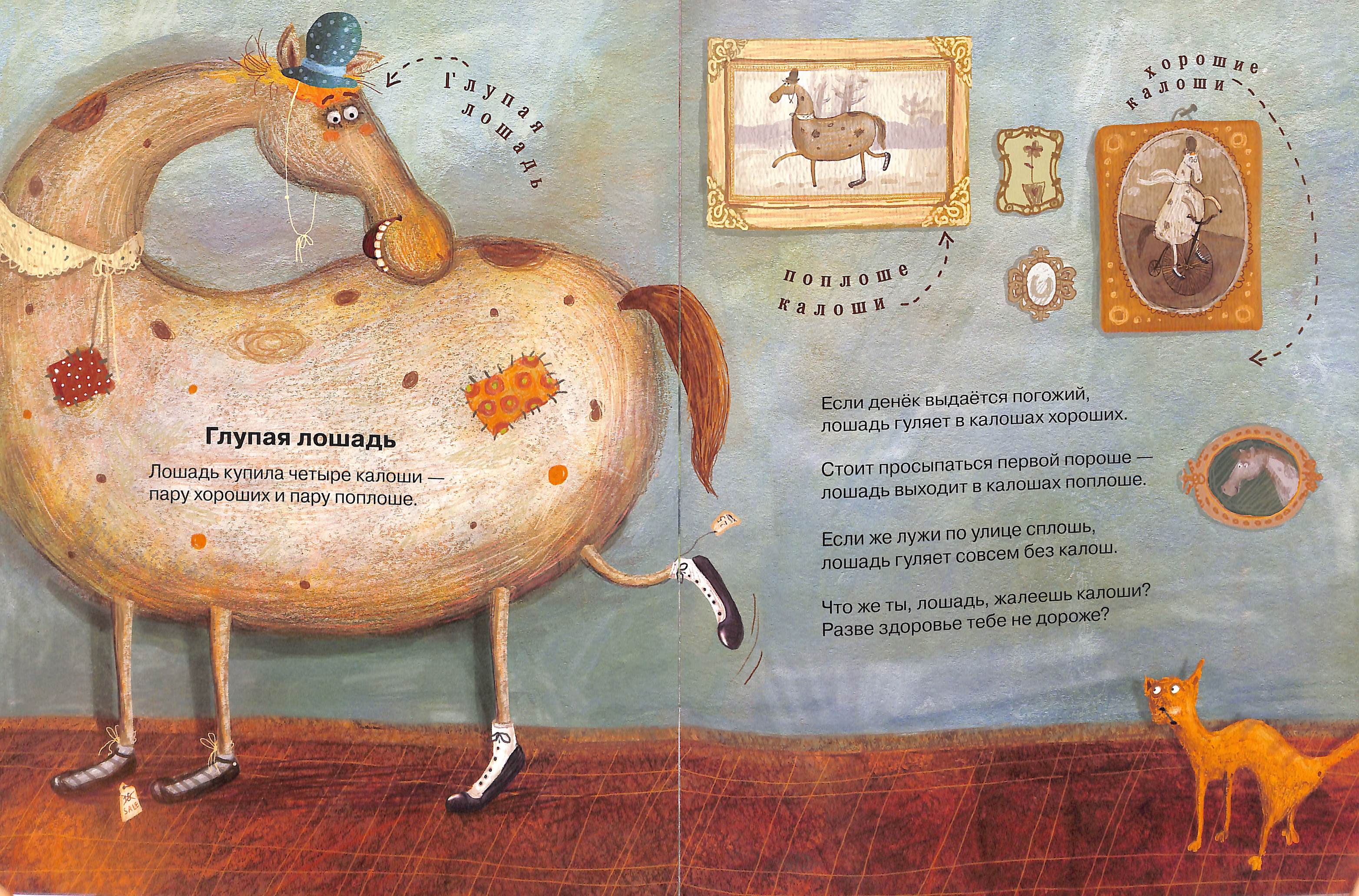 Так что поверхностный слой истории Левина до маленьких адресатов художник донёс. Общего детского восторга от книжки это сложное стихотворение не убавило.