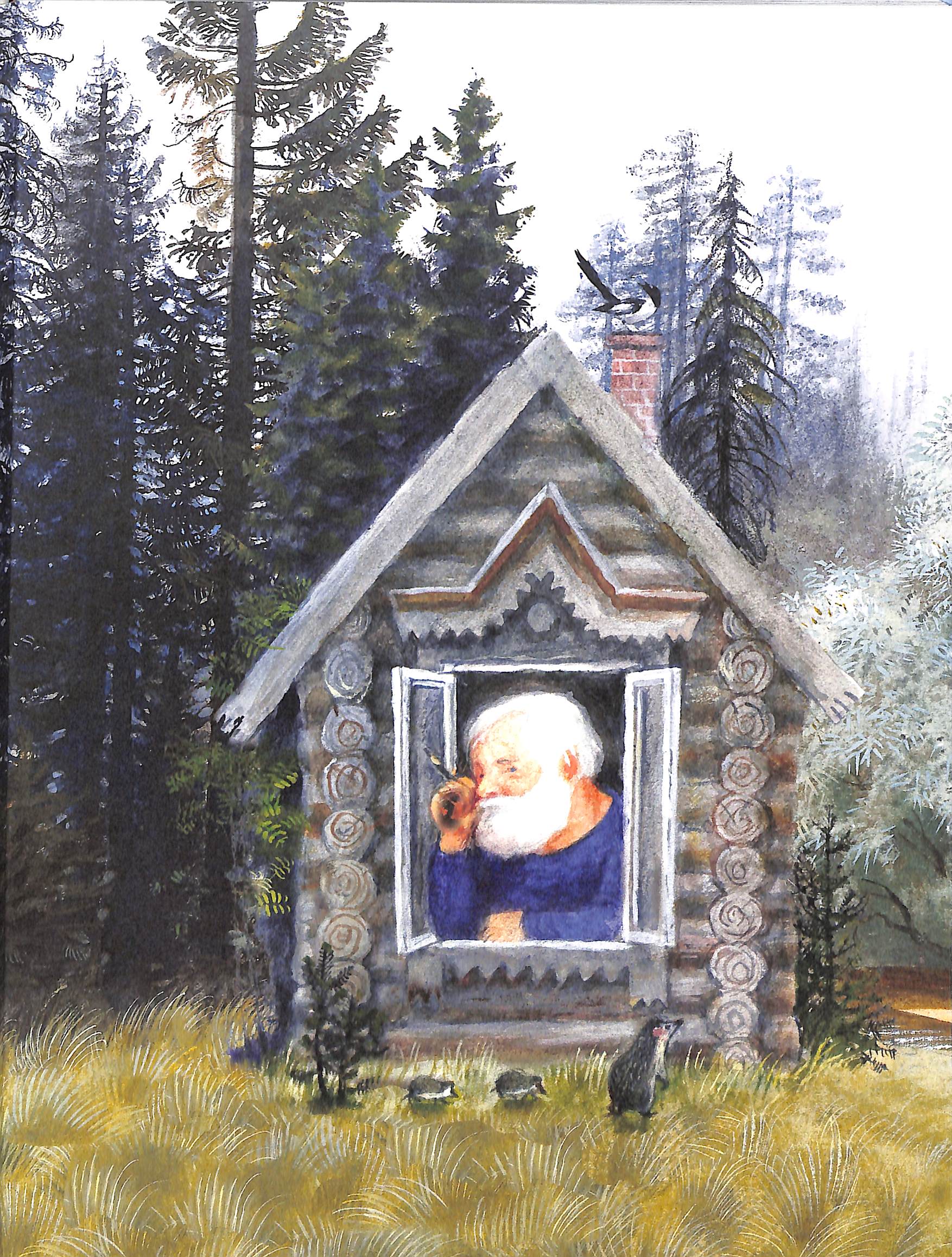 Иван-царевич пощадил медведя. Зима наступила. Только Устинов заметил, как долго по сказке находился в пути Иван-царевич. А времена года он рисовать любит — как было не воспользоваться внимательным прочтением сказки.